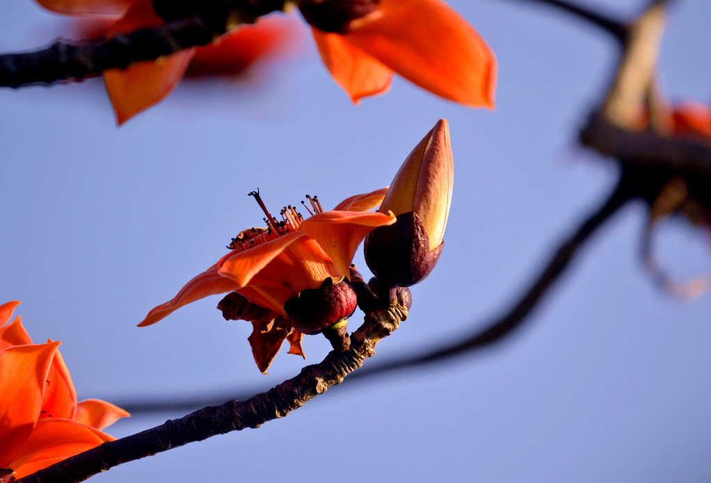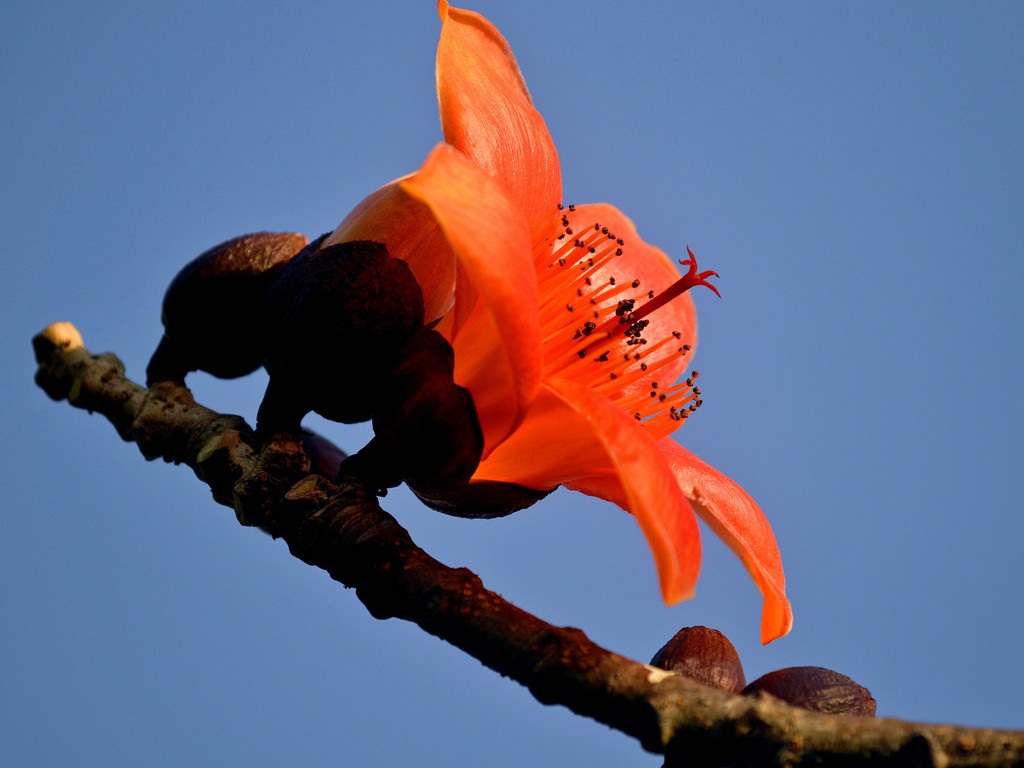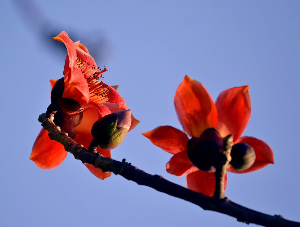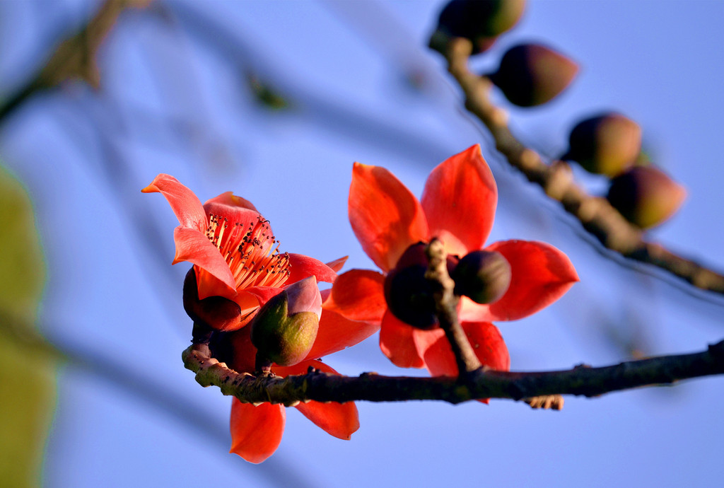 木棉花,落叶大乔木,高可达33米,树干直立有明显瘤刺,是南方的特产,花掉落后,树下落英纷陈,花不褪色、不萎靡,很英雄地道别尘世。