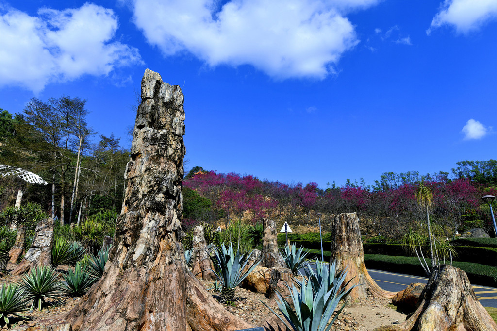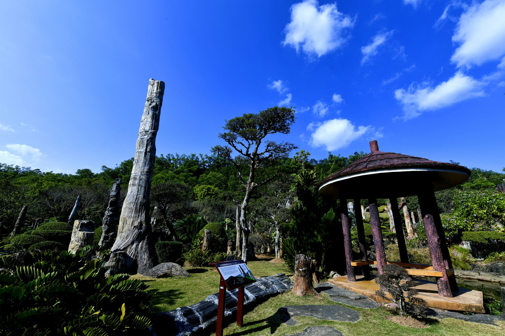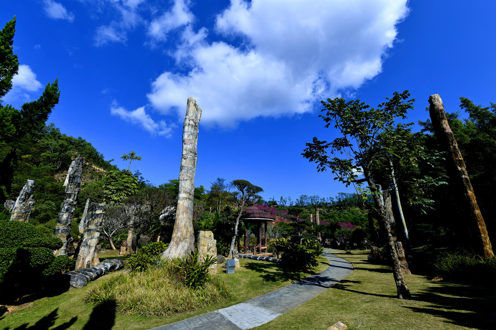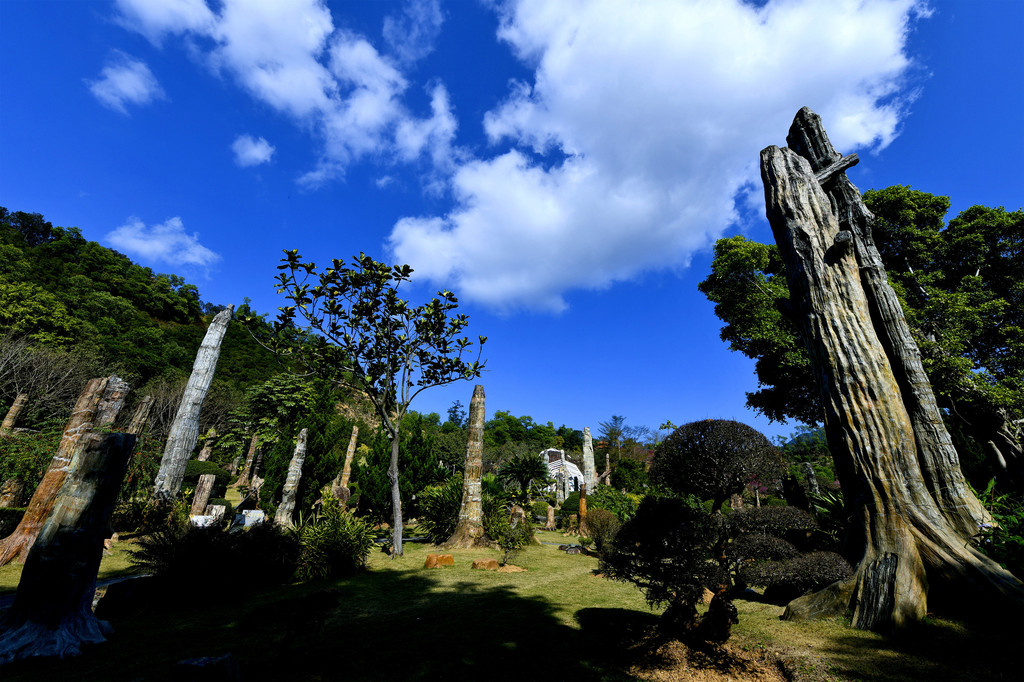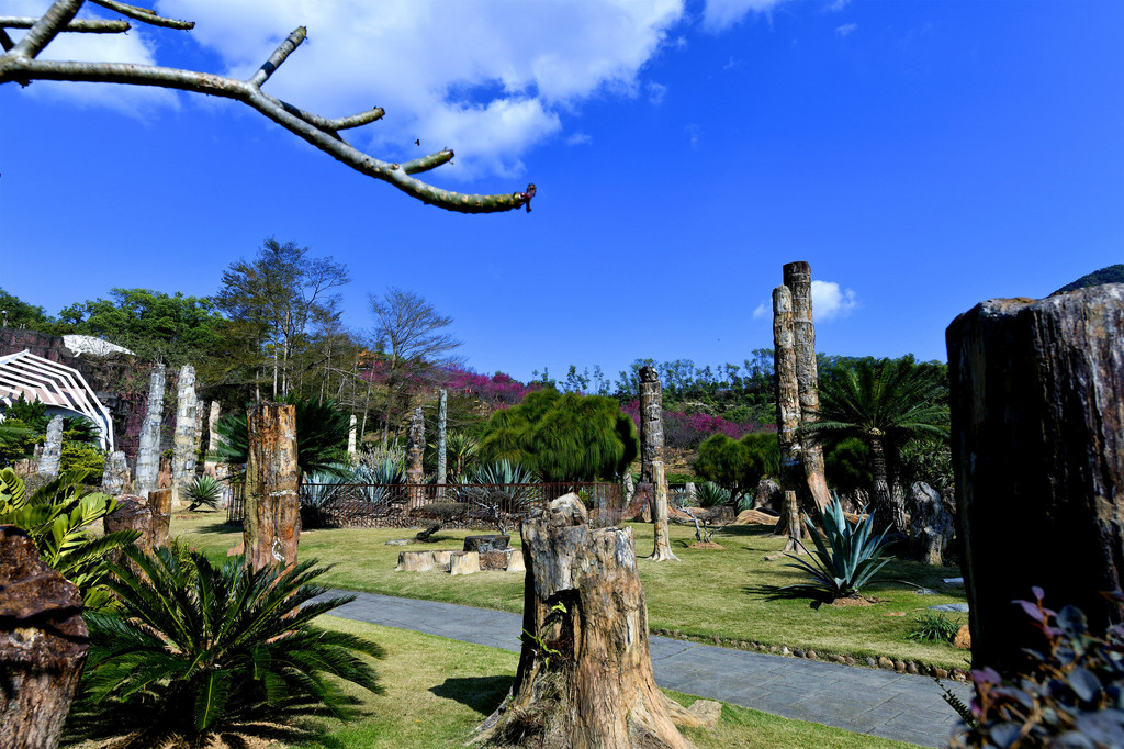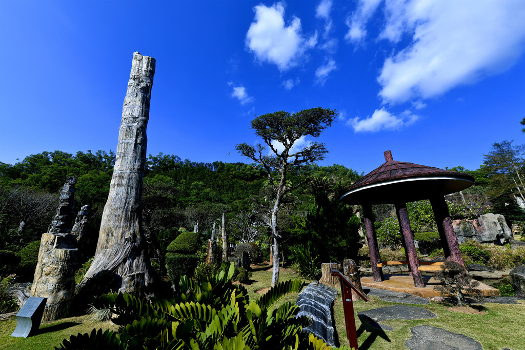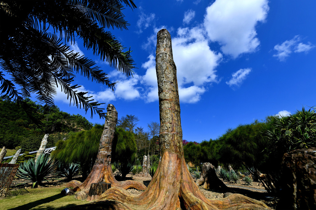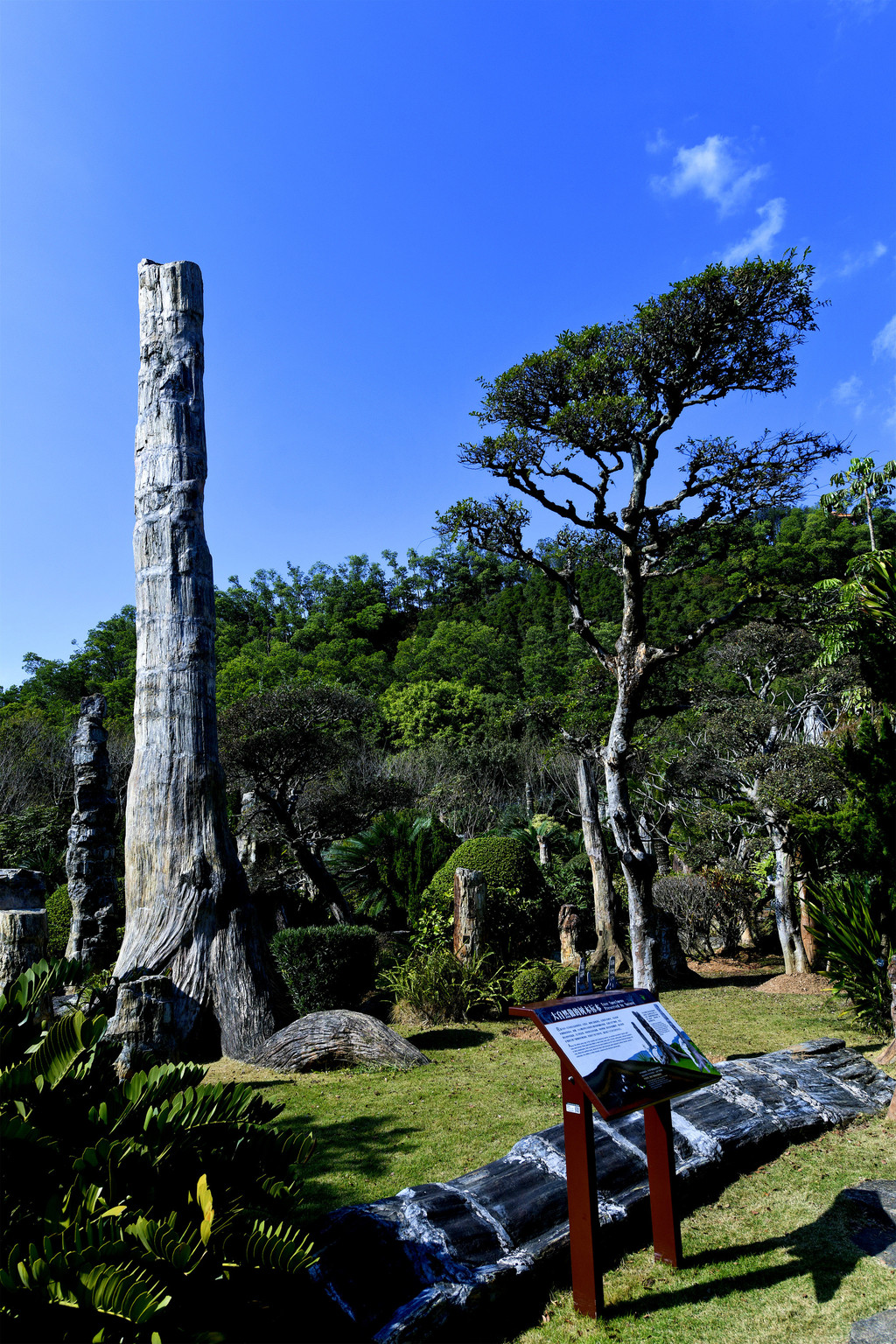 二处是化石森林,这里占地5000多平方米,收集了来自美国、马达加斯加、马来西亚、蒙古等国家和地区的200多株木化石标本,它们是大自然赐予人类的宝藏。