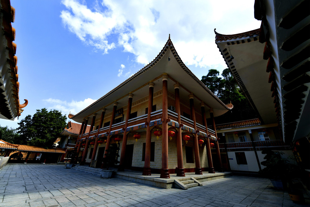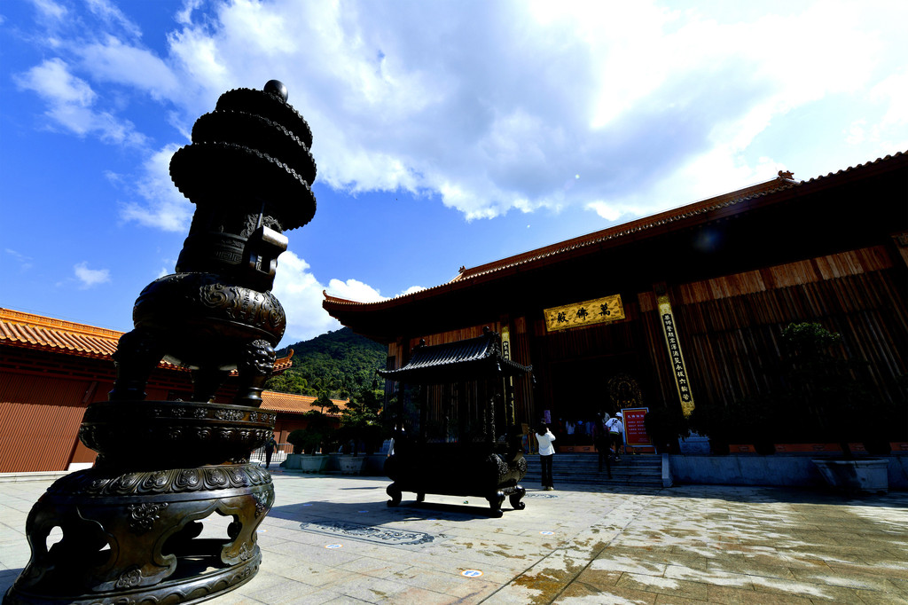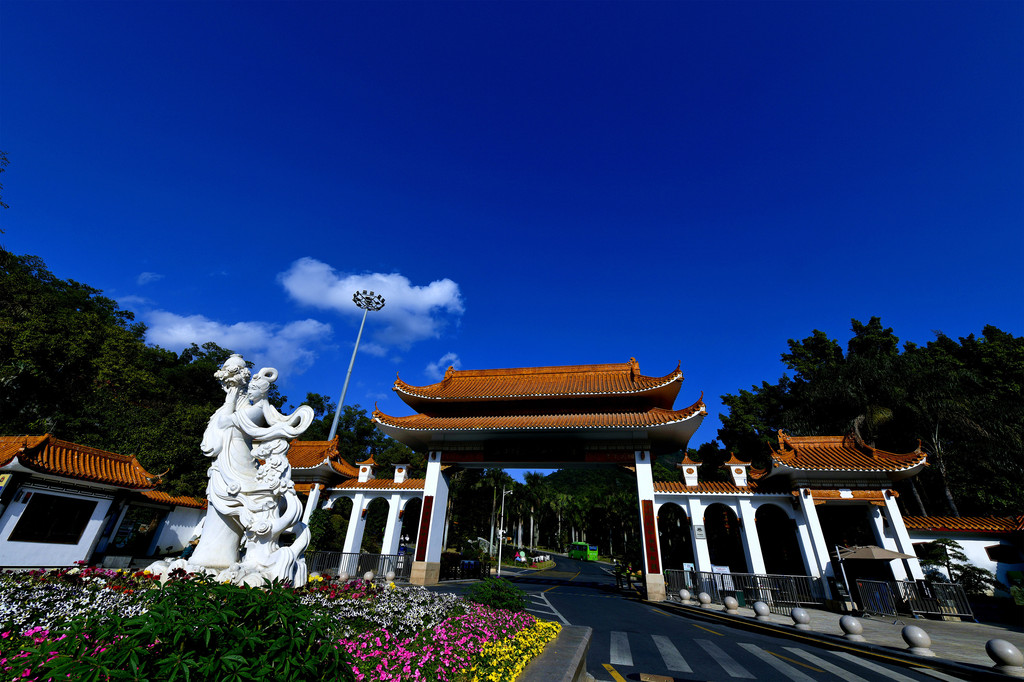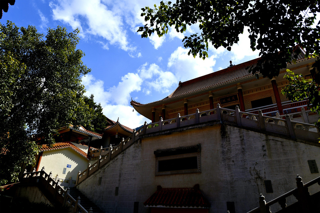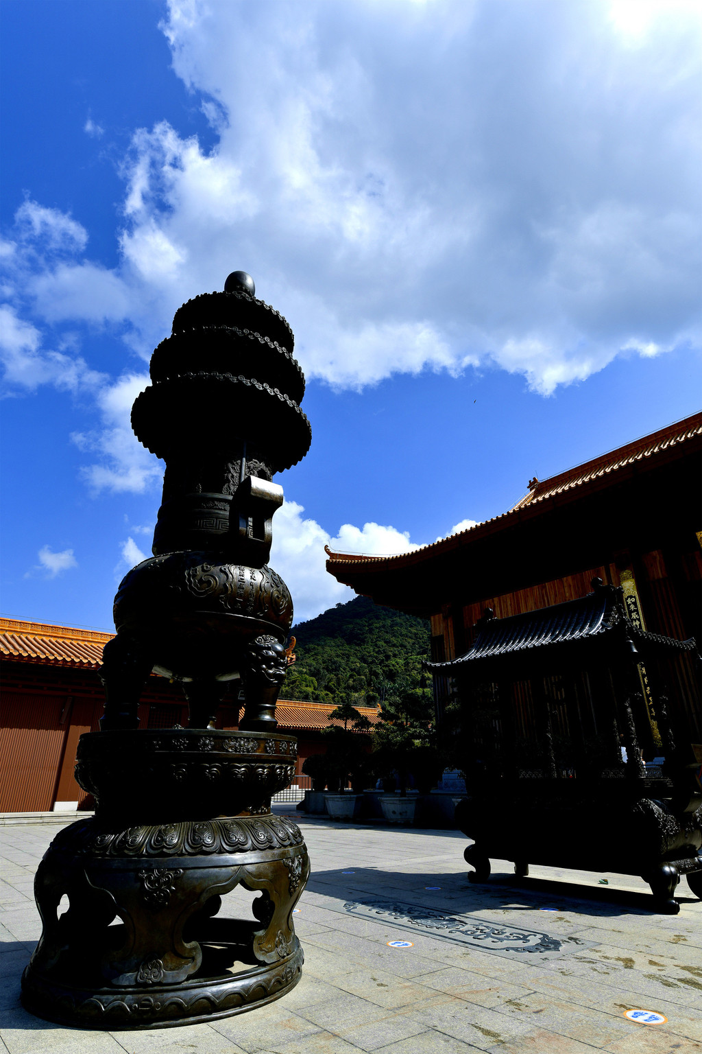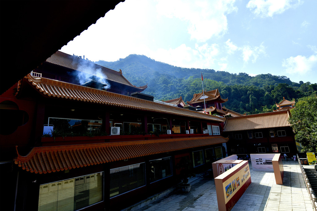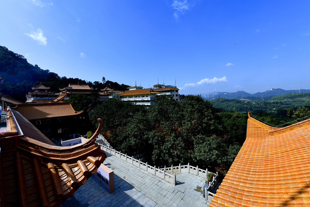 弘法寺,位于深圳市仙湖植物园内,背倚深圳“绿色心肺”梧桐山,面朝仙湖,周边自然风景十分优美,寺庙始建于1985年,虽然历史不算悠久,但规模在当地却算首屈一指,据说每逢初一、十五,前来烧香拜佛的信众很多。