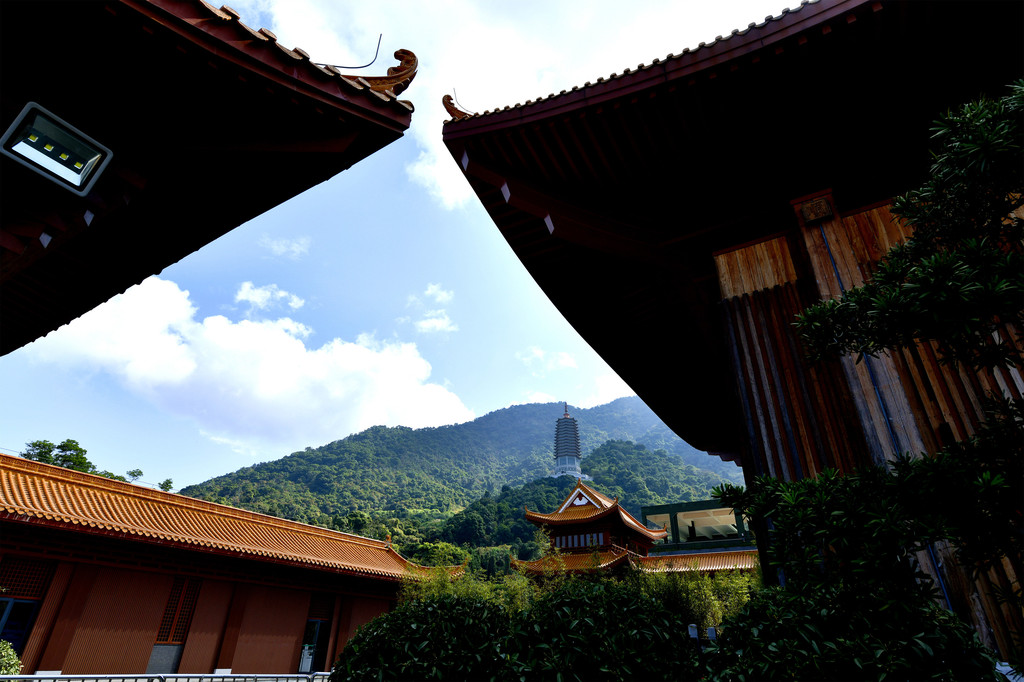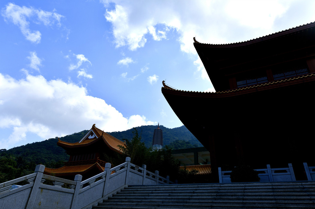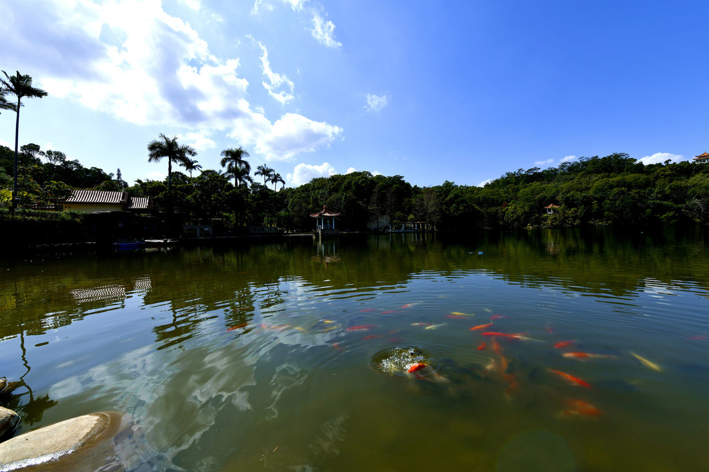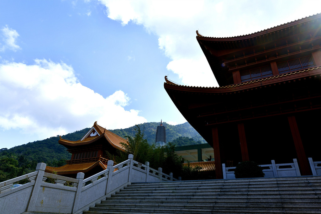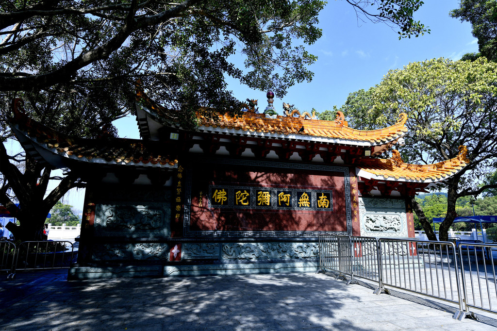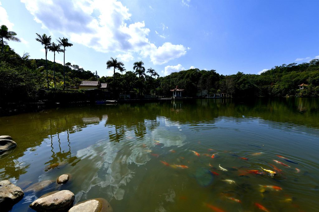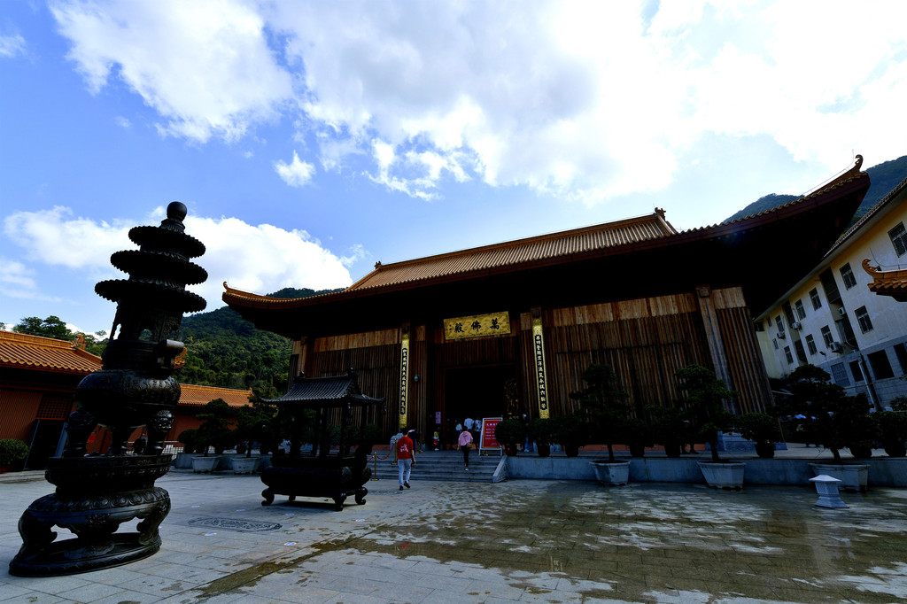 弘法寺,位于深圳市仙湖植物园内,背倚深圳“绿色心肺”梧桐山,面朝仙湖,周边自然风景十分优美,寺庙始建于1985年,虽然历史不算悠久,但规模在当地却算首屈一指,据说每逢初一、十五,前来烧香拜佛的信众很多。