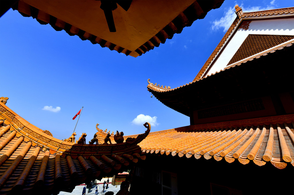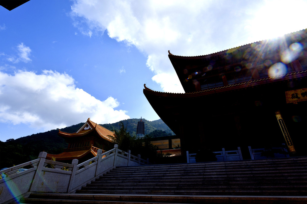 整个弘法寺规模庞大,殿宇众多,建筑也精美秀丽,斗拱飞檐,层层叠叠,显得十分雄伟壮观,大家称这里为深圳的“小故宫”。