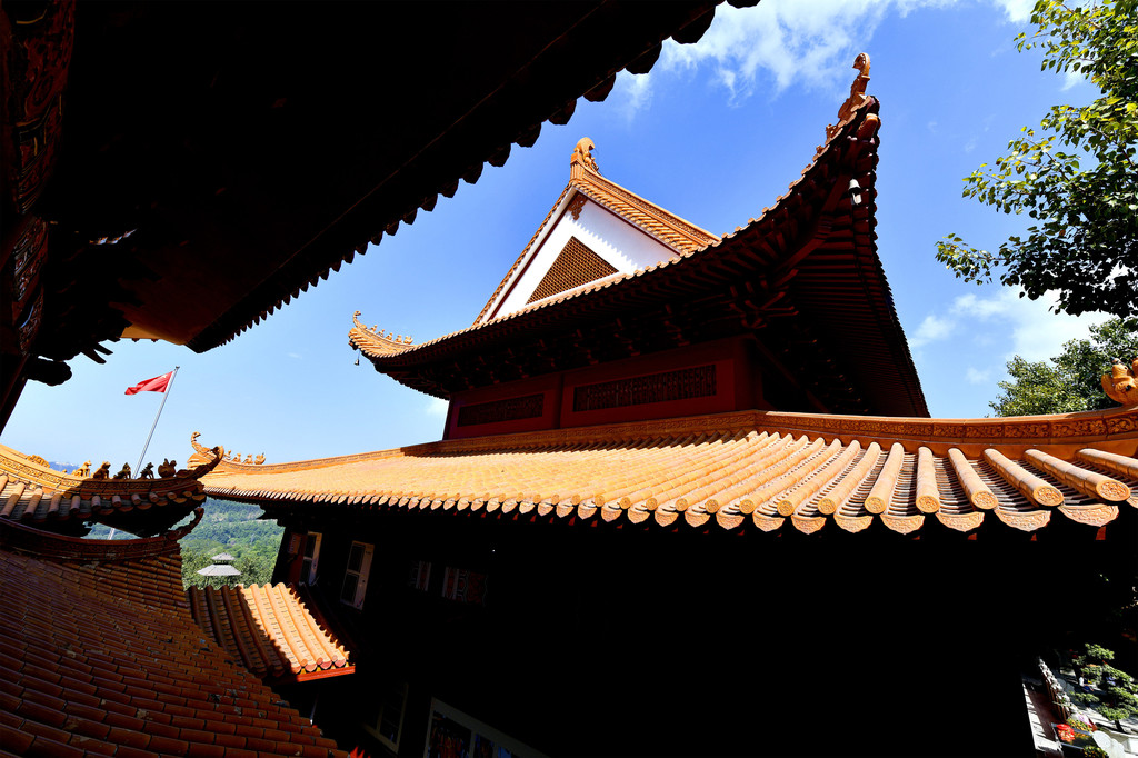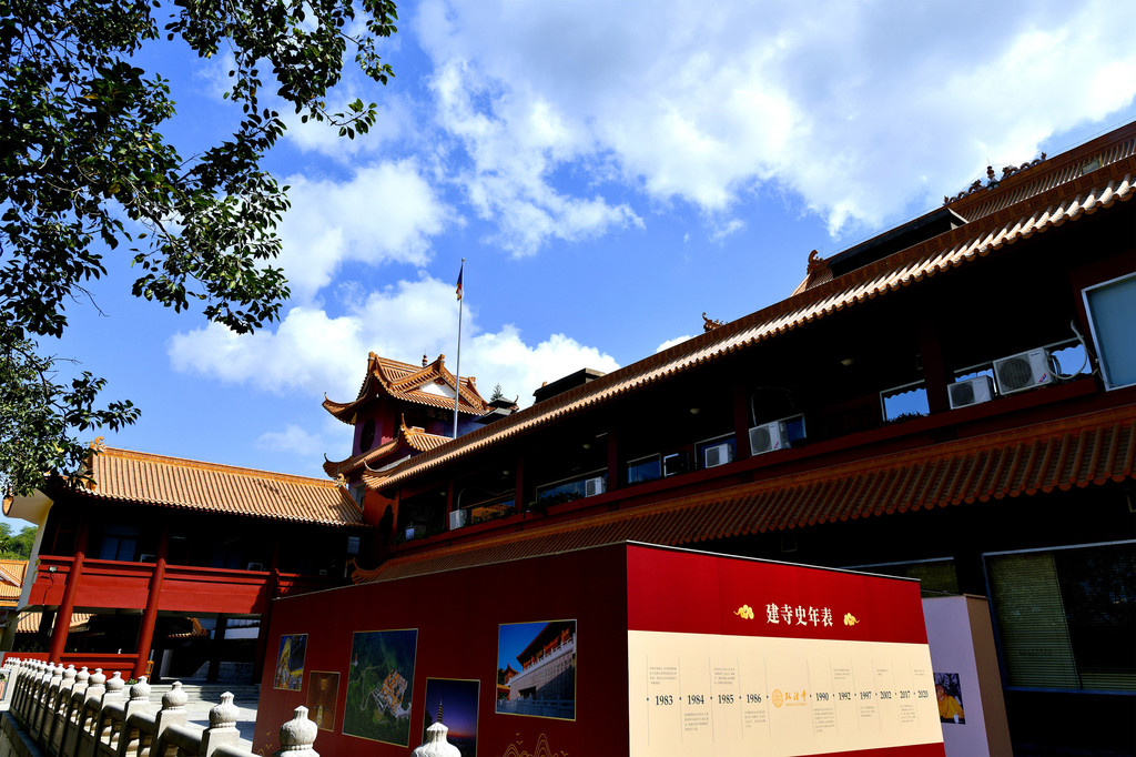 寺院坐东南朝西北,依山势而修建,层层升高,沿山门、殿、天王殿、佛教文化展览楼、大雄宝殿、藏经阁为一条主线建设,建筑面积达三万多平方米。