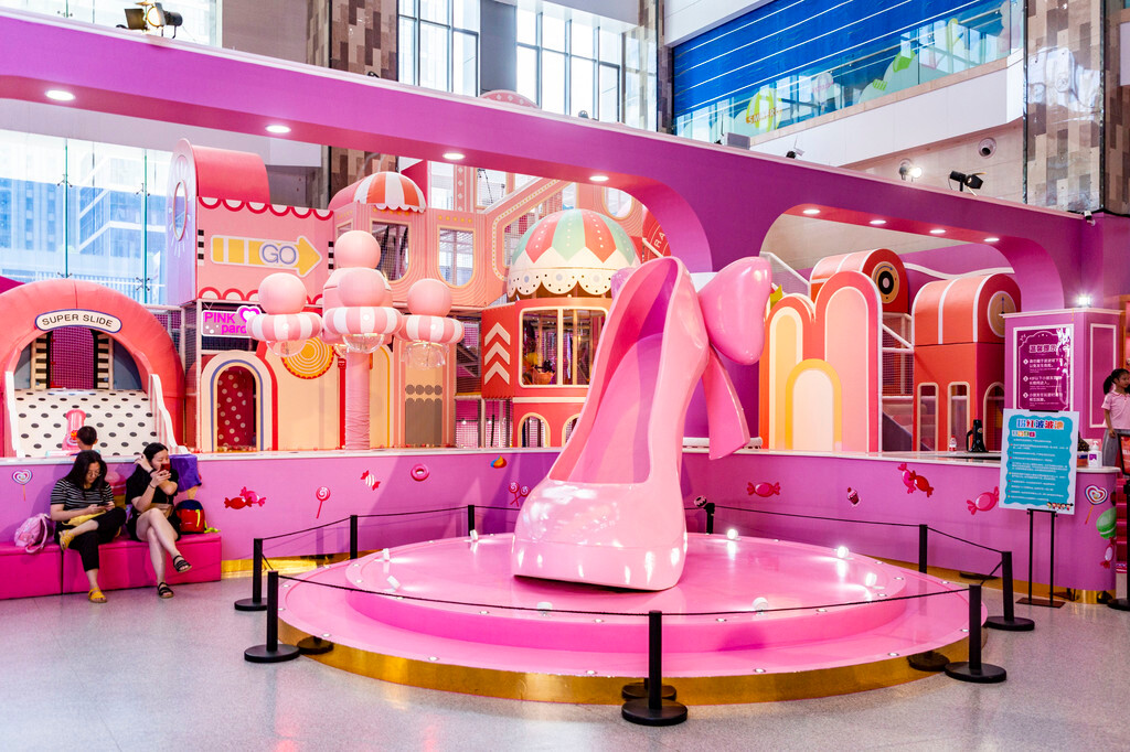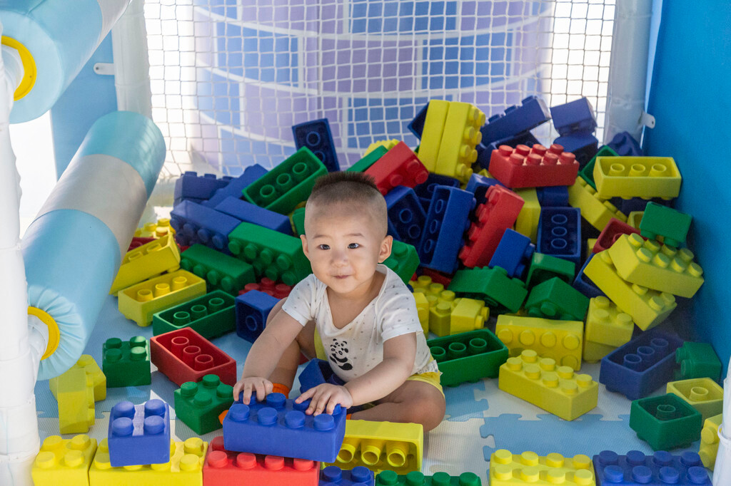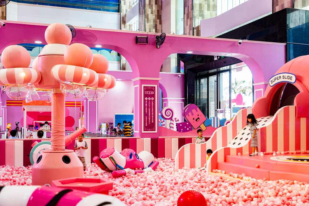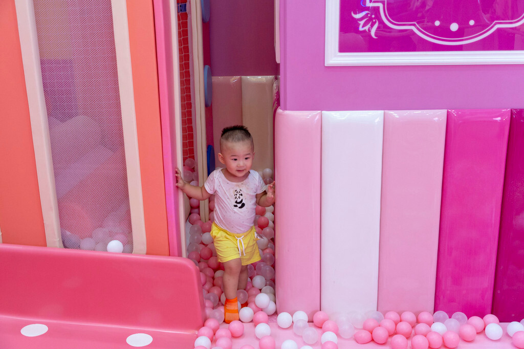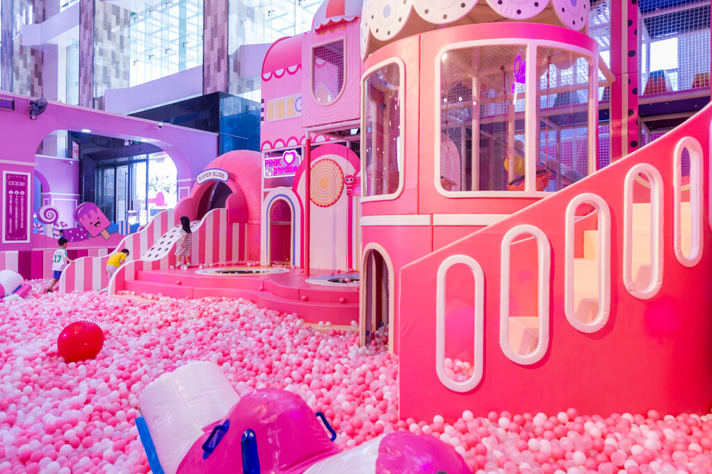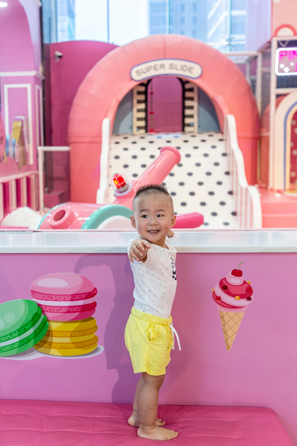 三楼的旋转滑梯、VR摩托竞速、积木王朝、也是必不可少的打卡位,真实地诠释了5~50岁都可以玩嗨的感受,而我家宝宝最喜欢的要数积木王朝,超大超好玩。如果错过了一楼的粉红啵啵池,三楼还有小型的迷你啵啵池在等你,还自带卡哇伊的头套供小朋友拍照哟。