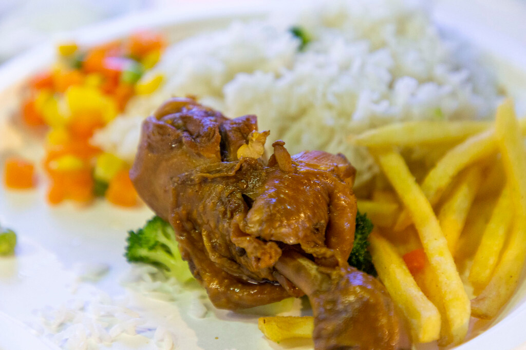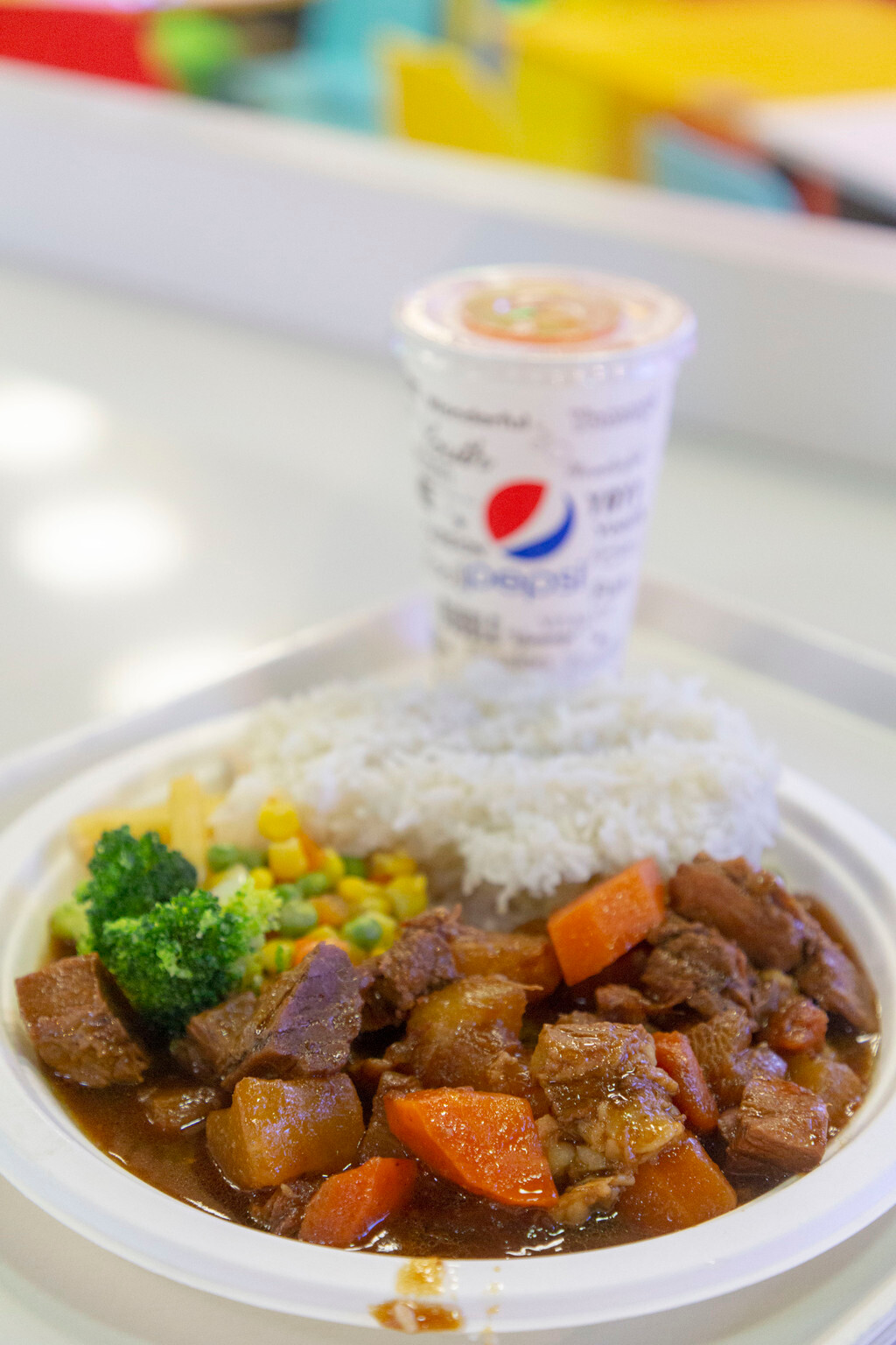 午餐可以在三楼的积木餐厅享用美食,这里能同时容纳400人用餐,套餐仅需42大洋一份,除了份量十足的主食,牛腩的份量也非常多,小朋友则可以选择鸡腿,更配一杯可乐或芬达,对游乐园而言,餐饮性价比可谓高出天际!