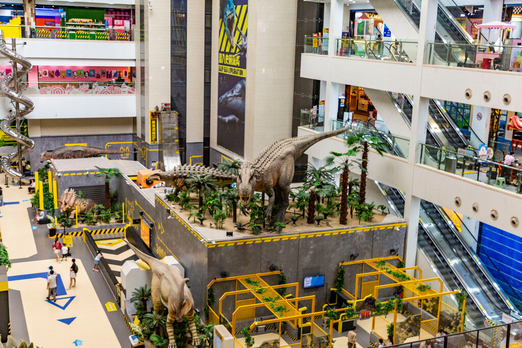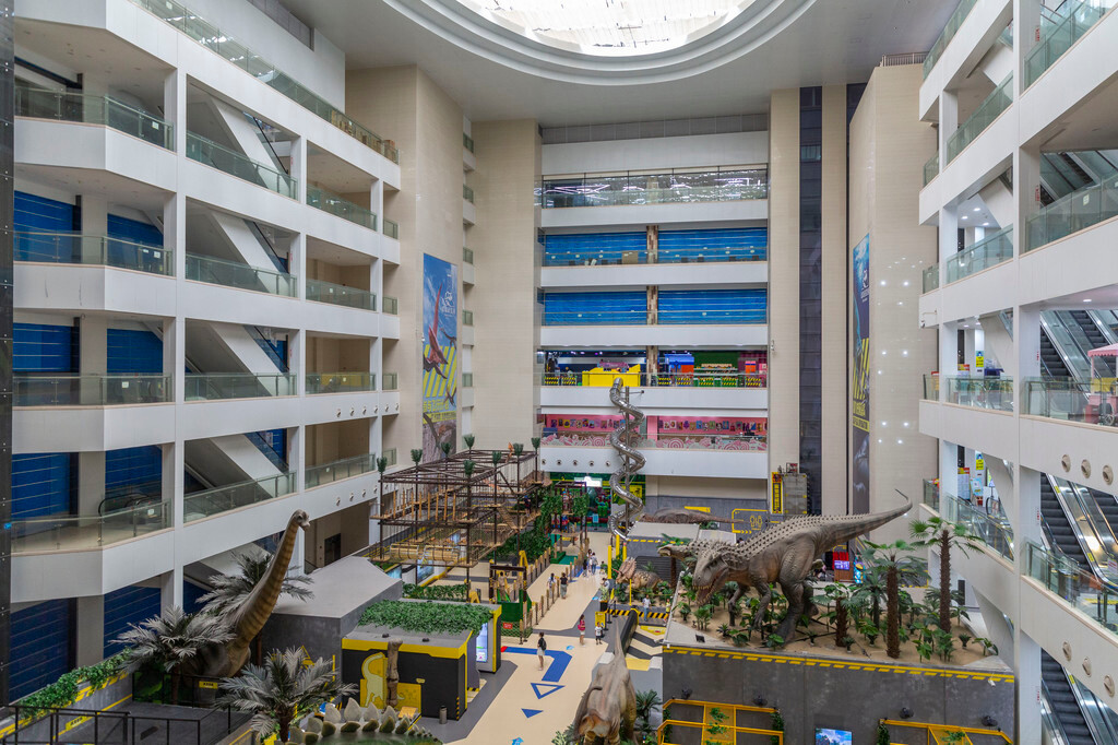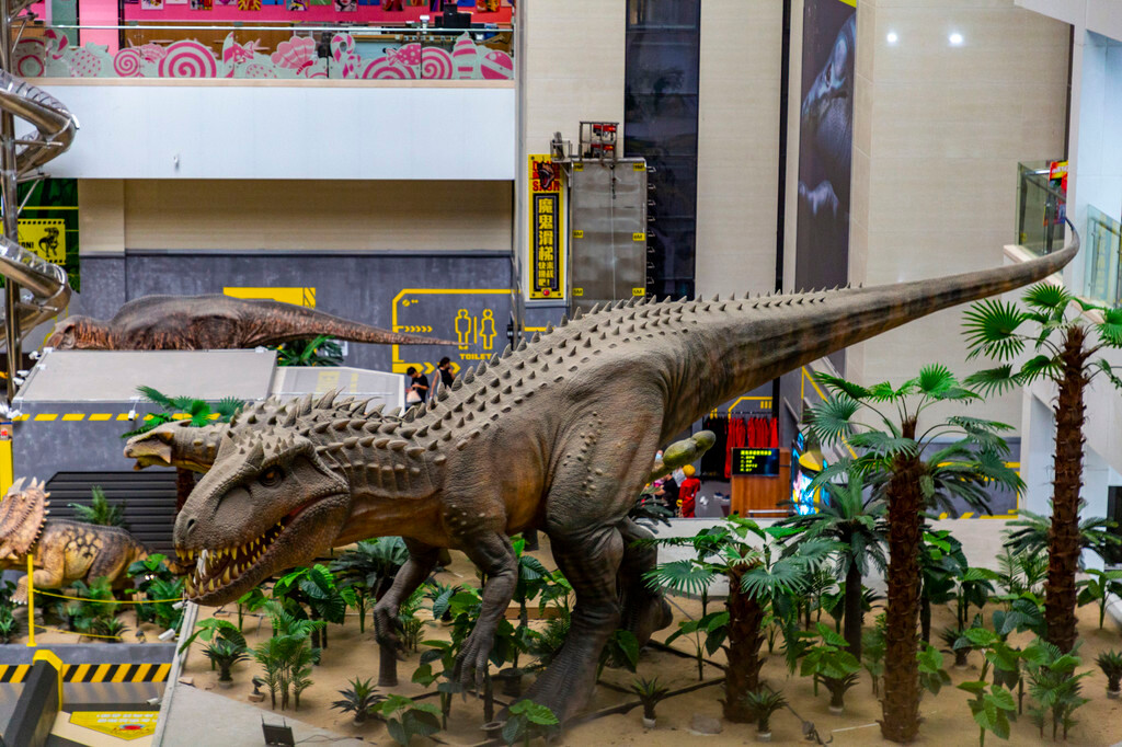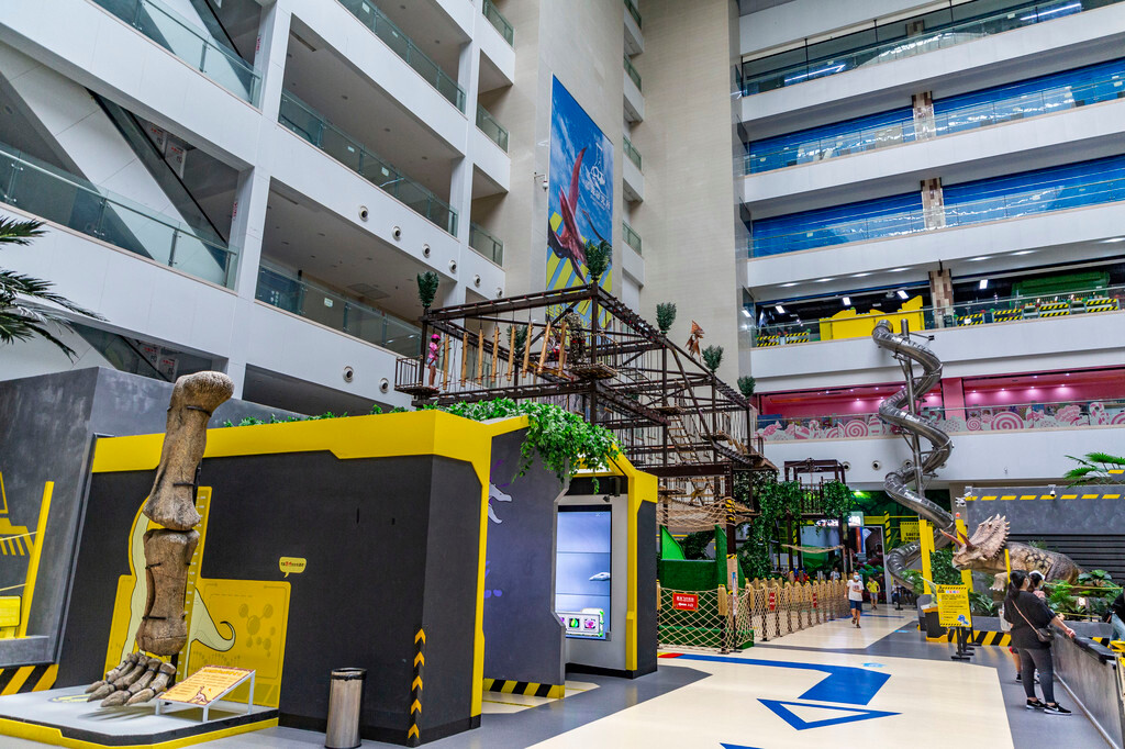 一楼中庭,有最受欢迎的亲子馆~恐龙馆,这个场馆不简单,不仅有众多教科书上的恐龙模型,非常逼真,仿佛令你一秒进入侏罗纪,还有90度直角滑梯和恐龙互动,化石挖掘等,而我家宝宝则偏爱恐龙涂鸦,随心而动,玩得十分开心!