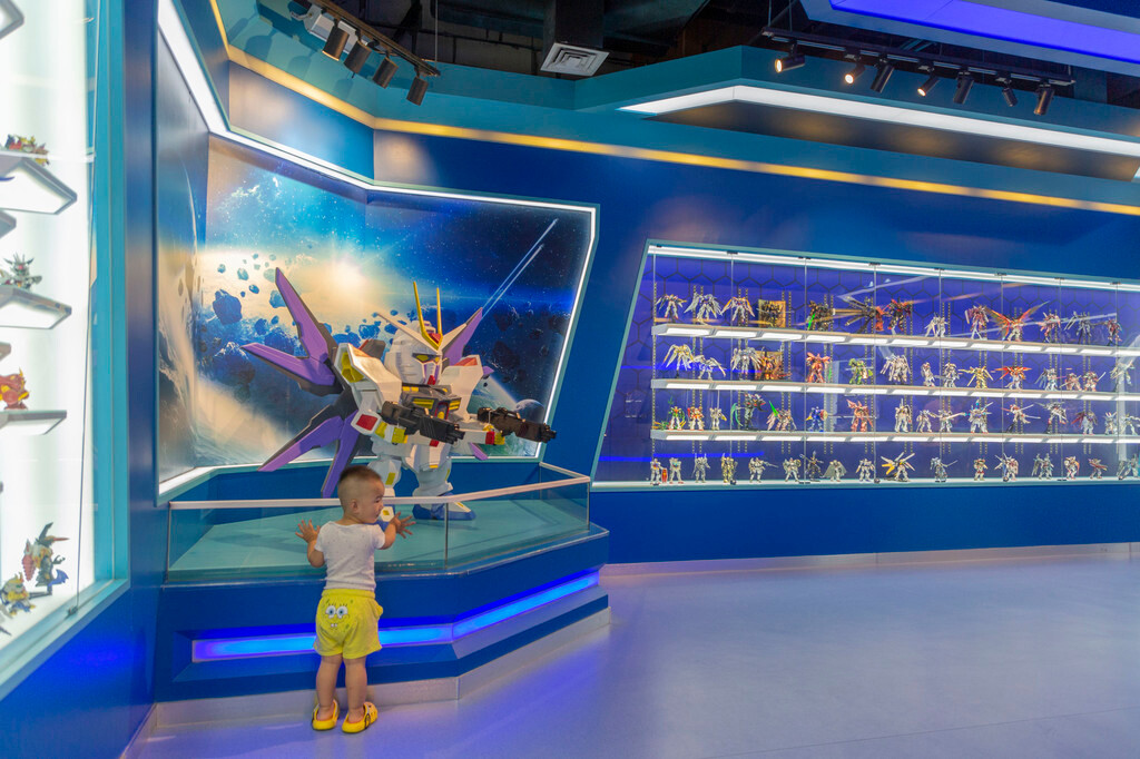 来到二楼,机甲童梦馆珍藏了复仇者联盟,高达等限量版手办模型,别提宝宝有多喜欢了!原来珍贵的手办,不止大人会喜欢,连宝宝也喜欢得不得了,自顾自得伸手想要拥有一个属于自己的手办。