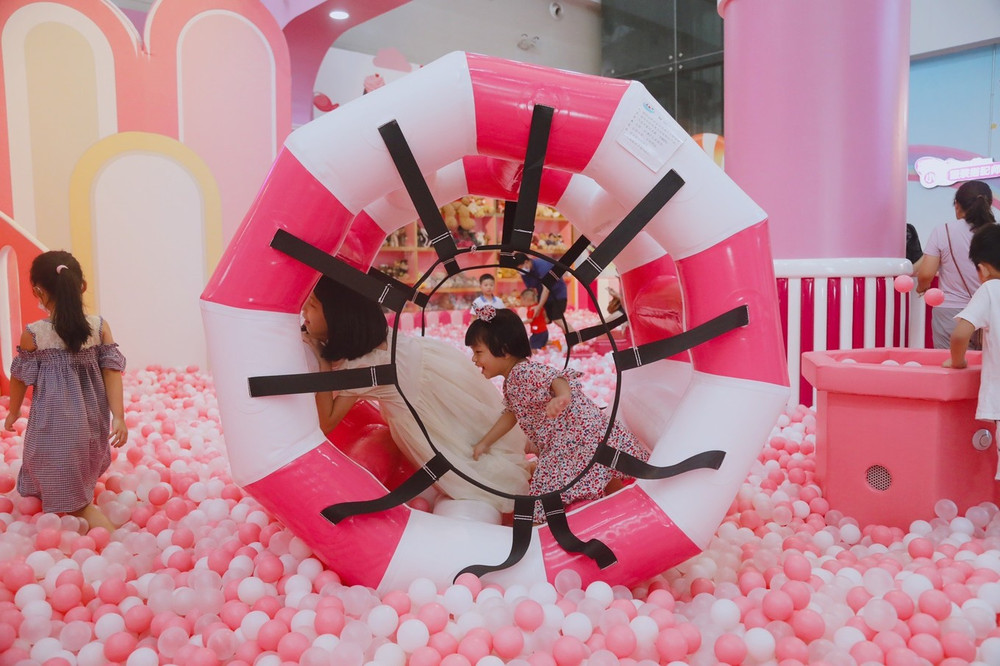 粉红色的波波池,粉红色的钢琴,也是非常吸睛的。不管男孩,还是女孩,都抗拒不了它的高颜值。