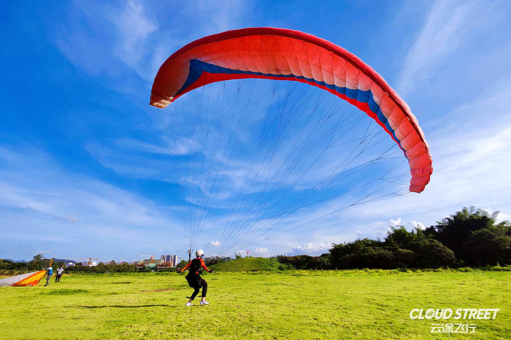 第一次触摸到滑翔伞的感觉还是十分奇妙的,在力量的拉扯下逐渐充气,飞到高于我的头顶,然后教练就对我发出指令:“跑起来!”,随风奔跑的感觉,是大汗淋漓后的畅爽。只是稍加体验一下的时间,我感觉自己就已经沉浸于滑翔伞无法自拔了,很难想象飞起来以后是什么感觉!云途这里有两个班,集中班和随到随学。我报的是随到随学班,因为在深圳还是比较近的,可以利用周末的空闲时间过来学习,一年学籍时间不限课时不限飞行次数,节假日都可以过来,对我这种就非常友好,完全实现了学习自由。好了,今日分享就到这里吧,期待早日能放飞那一天~
