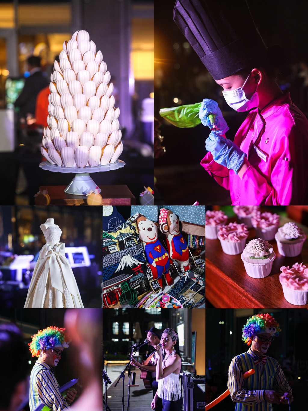 更有酒店西餐厅的糕点师现场制作巧克力贝壳甜品等,巧克力贝壳摆成了一座城堡,还制作了一件雪白婚纱的翻糖蛋糕,深得小孩子和女生的喜爱,没想到还有这么丰富饭后娱乐。