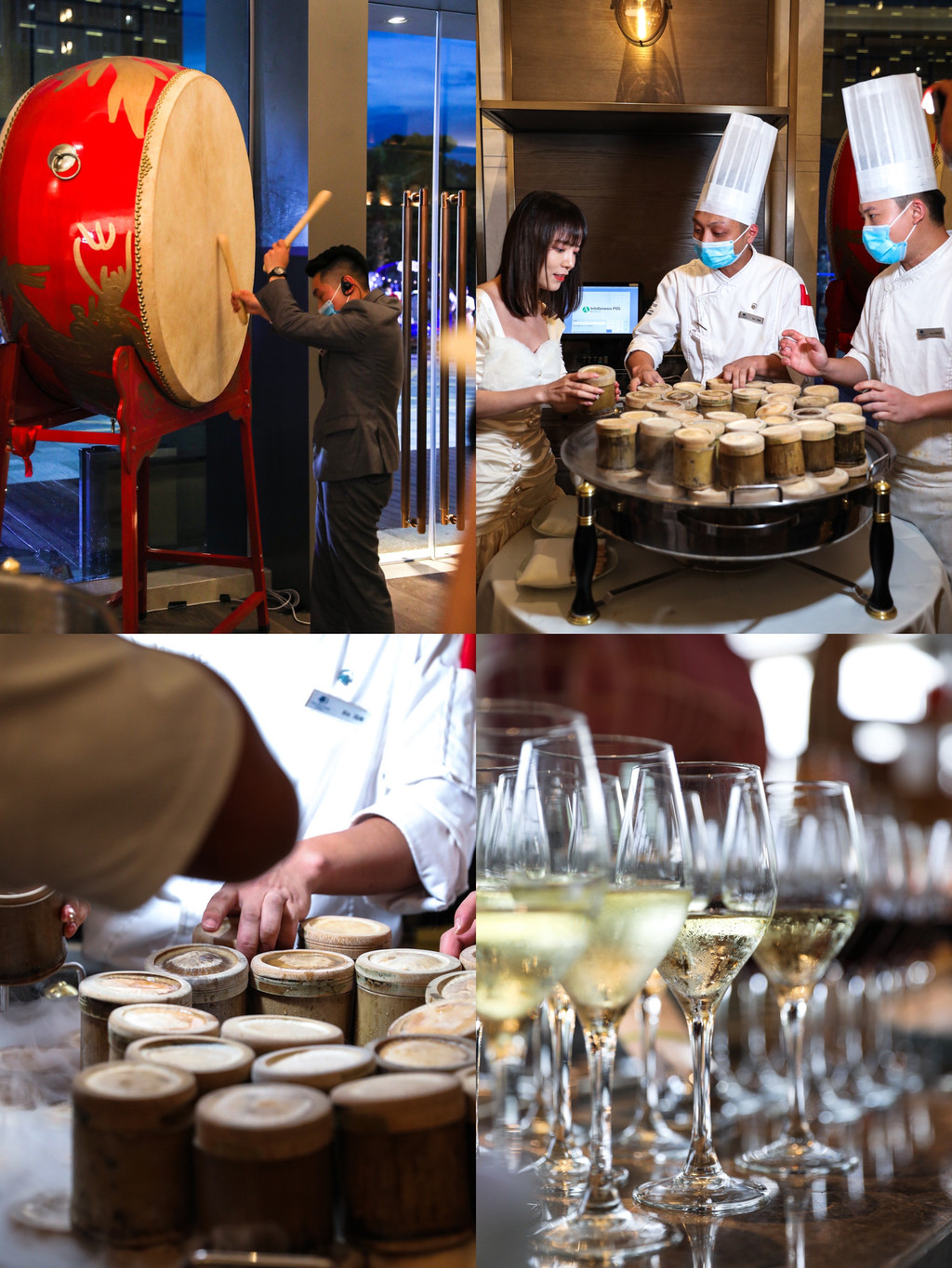 就餐中,还有一个非常有特色的互动环节就是“击鼓菜“,工作人员会准点击鼓传菜,每次的菜都不一样,大家热闹的参与其中,菜品一上来,大家就蜂拥而至一抢而空,享受到了就餐的热闹氛围。