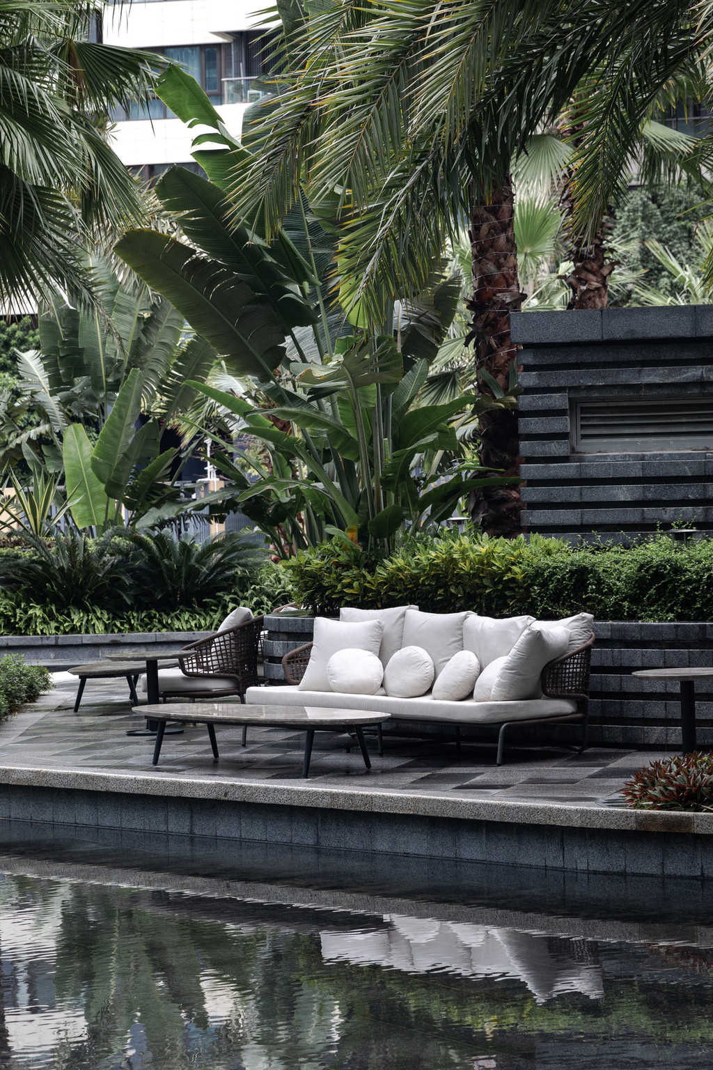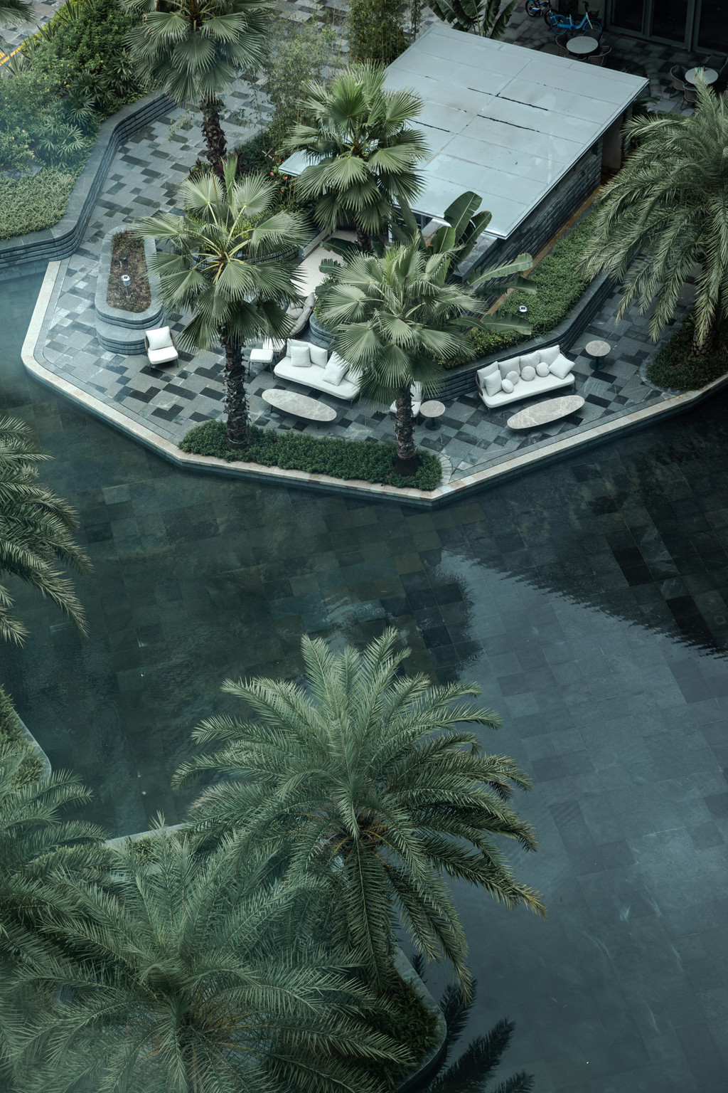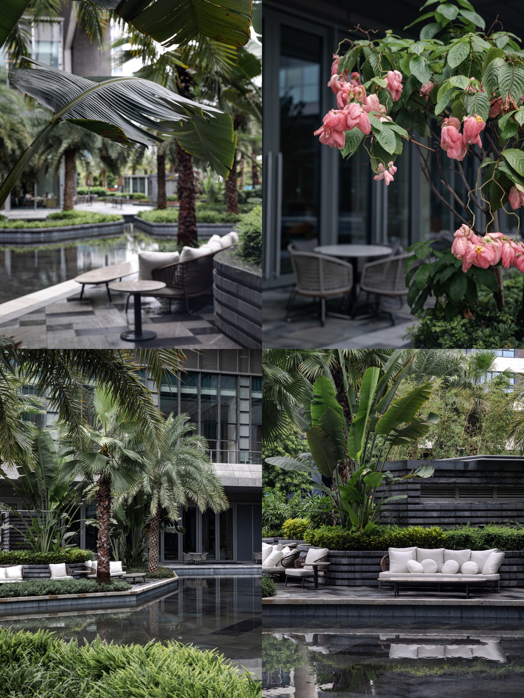 真的没想到酒店的后花园如此的漂亮,干净的水面,高低错落有致的绿植,棕榈树一下就将我带入到东南亚度假的错觉,下过小雨后感觉可真好,空气中都是雨后的芬芳夹杂着绿叶青草的淡淡香味。