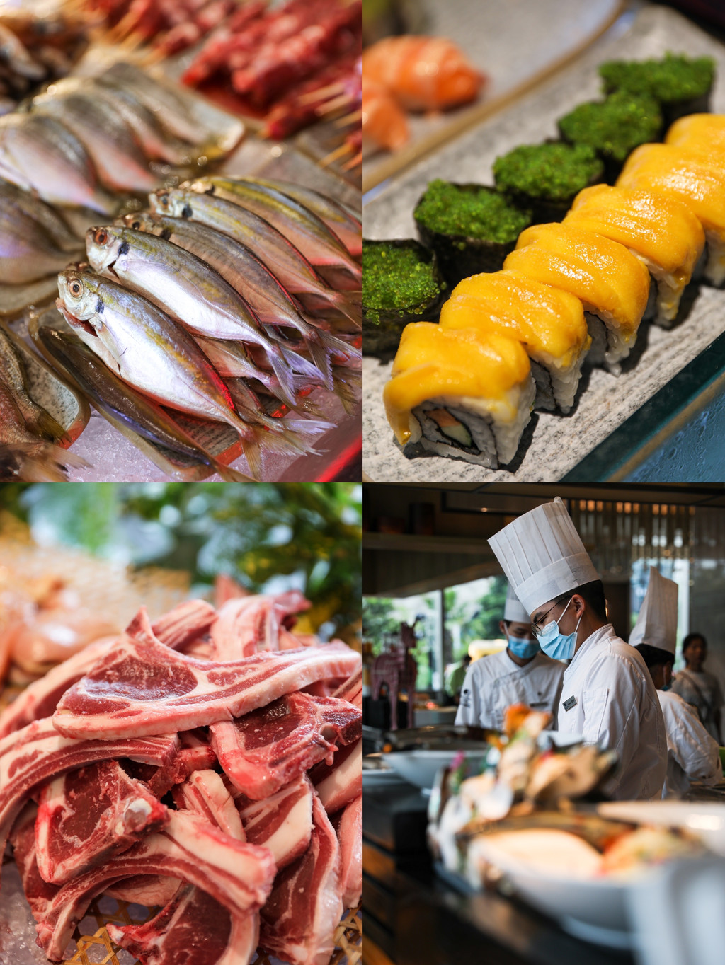 除了超好吃的各种海鲜之外,日料寿司、现场烤肉、广式烧腊、蒸菜、面食等都非常的齐全,可以任选自己喜欢的美食。