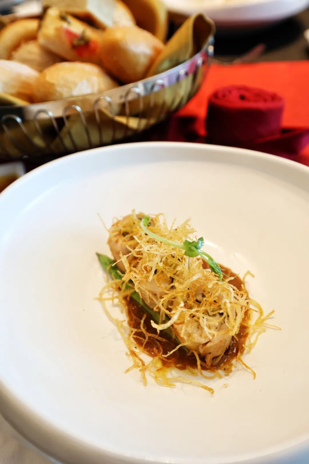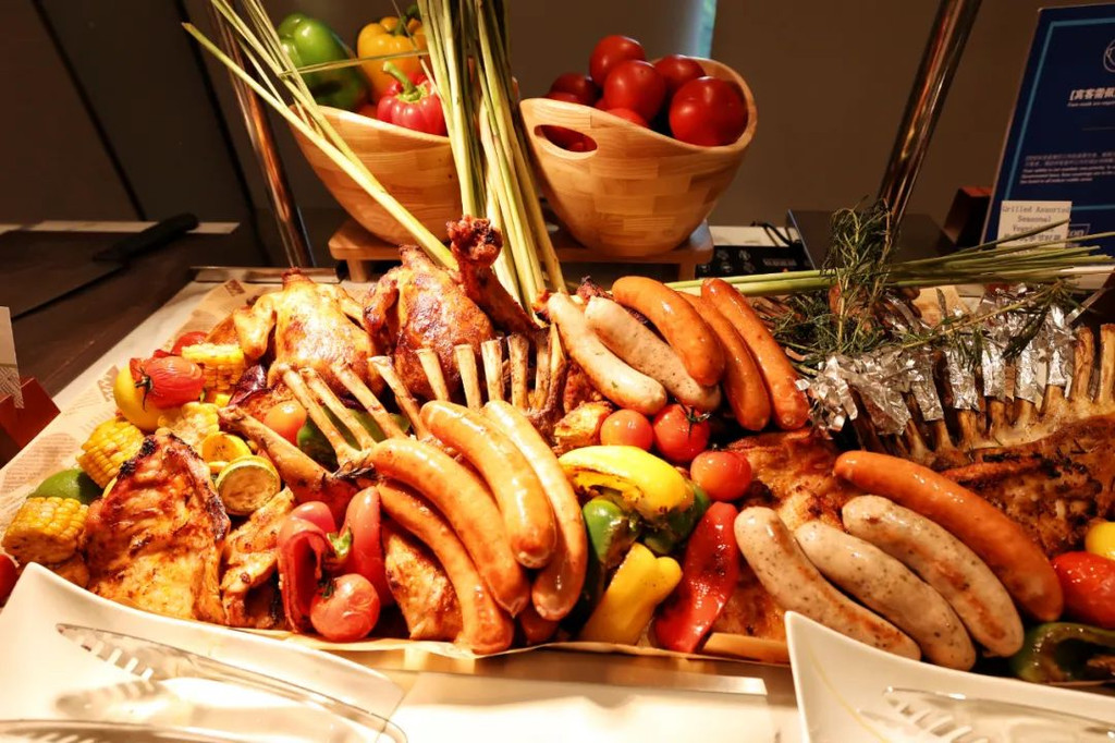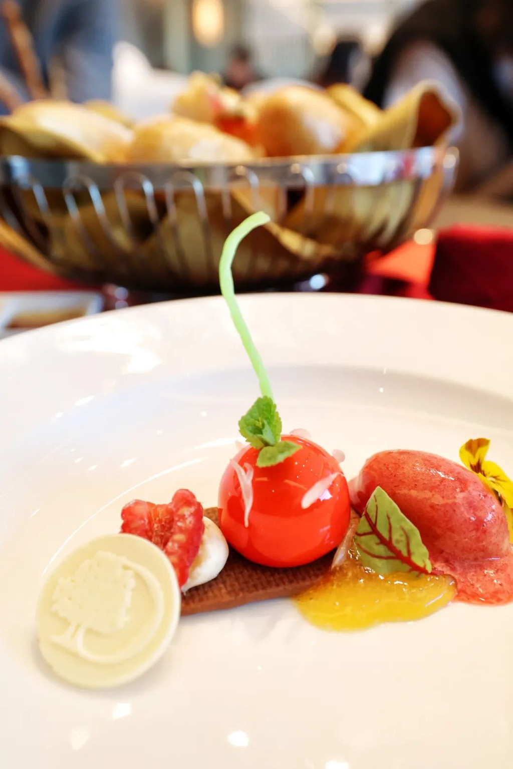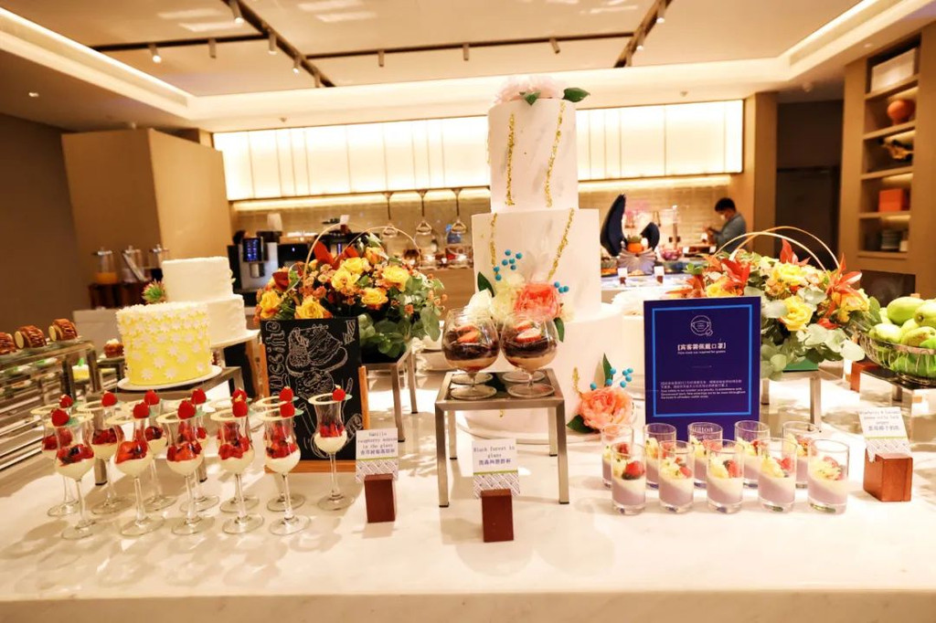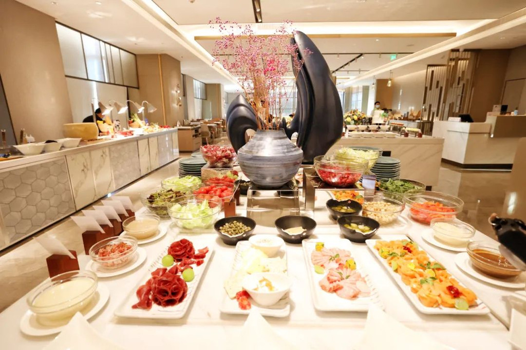 【鲜虾藜麦牛油果沙拉】鲜虾上面倒上芝麻酱以后,大虾的鲜味来得更加的丰富,用这两道前菜来打开味蕾,一顿正式的西餐也就此拉开序幕。【地中海风味海鲜汤】【香煎海鲈鱼】【松露芦笋鸡肉卷】主菜是二选一的,我选了这道松露芦笋鸡肉卷,因为喜欢松露的味道,用鸡肉来包裹着,特显魅力。【甜品】主厨手工制作的甜品,尤其是中间那个柚子芝士冻糕配上覆盆子雪芭,入口的感觉很惊艳很上头,有点像最近听到哥哥们唱的甜蜜蜜一样,很有熟悉感,体会到许久未有的心动感。在这里吃西餐,感受到满满的仪式感,从开胃前菜到餐后甜点,是西餐的仪式感,生活的仪式感。【自助晚餐】酒店融合中西菜式为宾客打造味觉盛宴,带来从味觉到视觉双重愉悦。