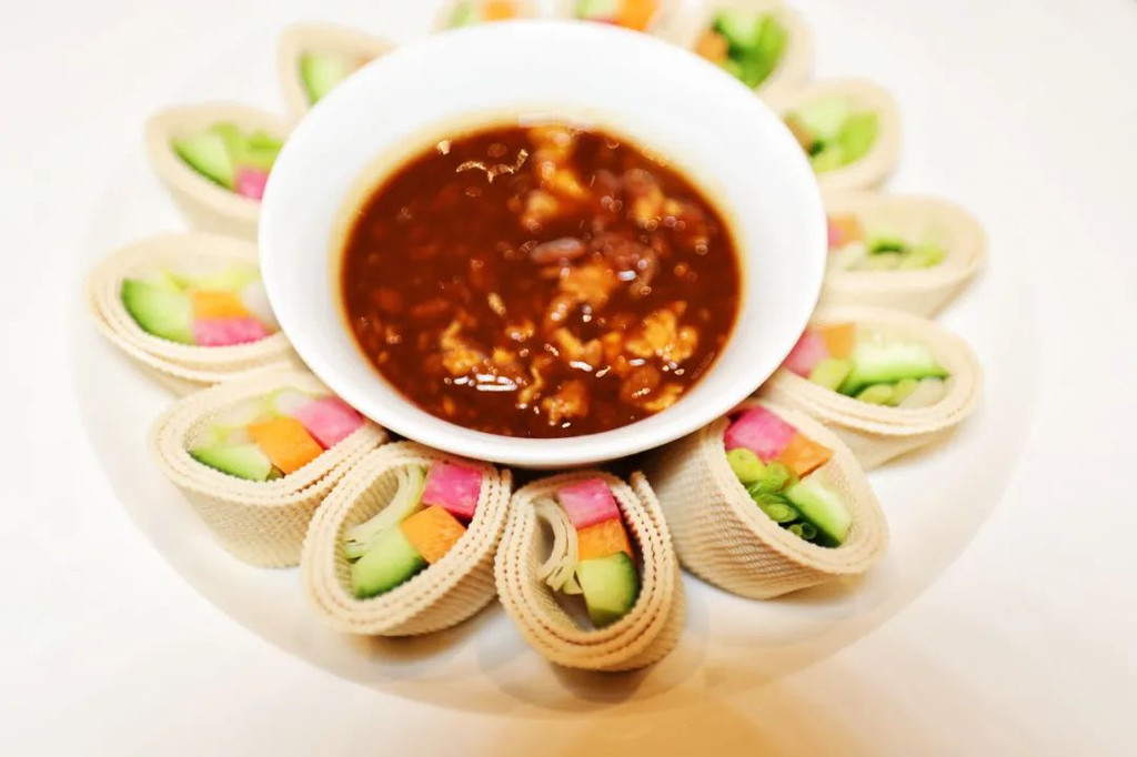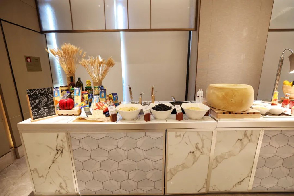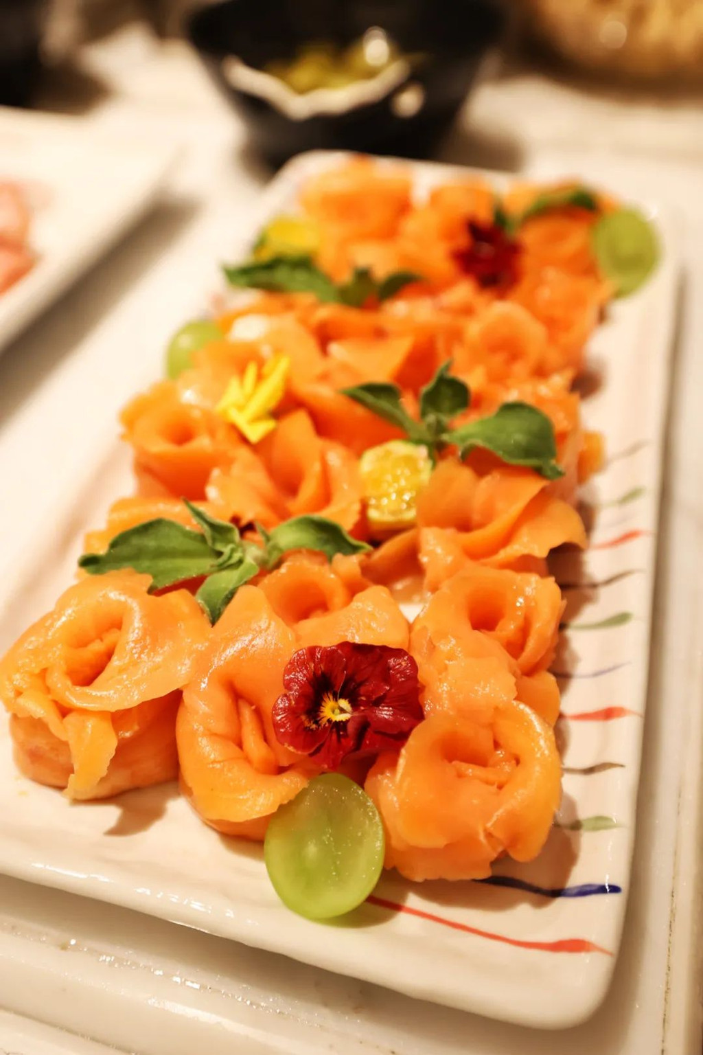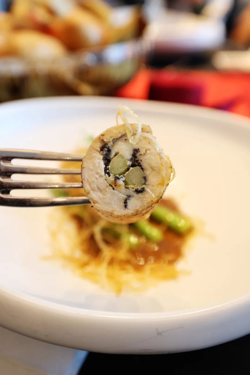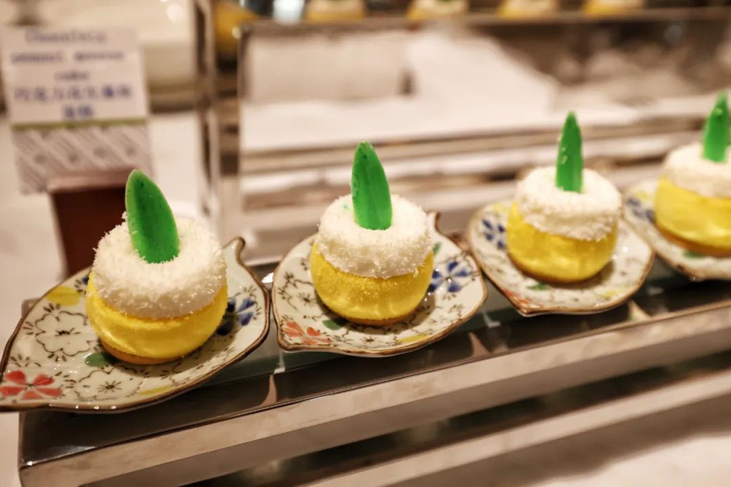 【鲜虾藜麦牛油果沙拉】鲜虾上面倒上芝麻酱以后,大虾的鲜味来得更加的丰富,用这两道前菜来打开味蕾,一顿正式的西餐也就此拉开序幕。【地中海风味海鲜汤】【香煎海鲈鱼】【松露芦笋鸡肉卷】主菜是二选一的,我选了这道松露芦笋鸡肉卷,因为喜欢松露的味道,用鸡肉来包裹着,特显魅力。【甜品】主厨手工制作的甜品,尤其是中间那个柚子芝士冻糕配上覆盆子雪芭,入口的感觉很惊艳很上头,有点像最近听到哥哥们唱的甜蜜蜜一样,很有熟悉感,体会到许久未有的心动感。在这里吃西餐,感受到满满的仪式感,从开胃前菜到餐后甜点,是西餐的仪式感,生活的仪式感。【自助晚餐】酒店融合中西菜式为宾客打造味觉盛宴,带来从味觉到视觉双重愉悦。