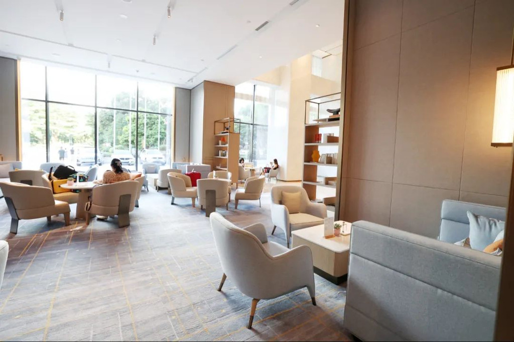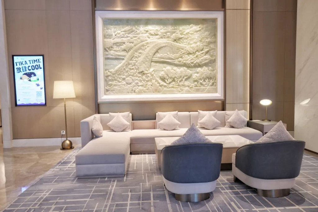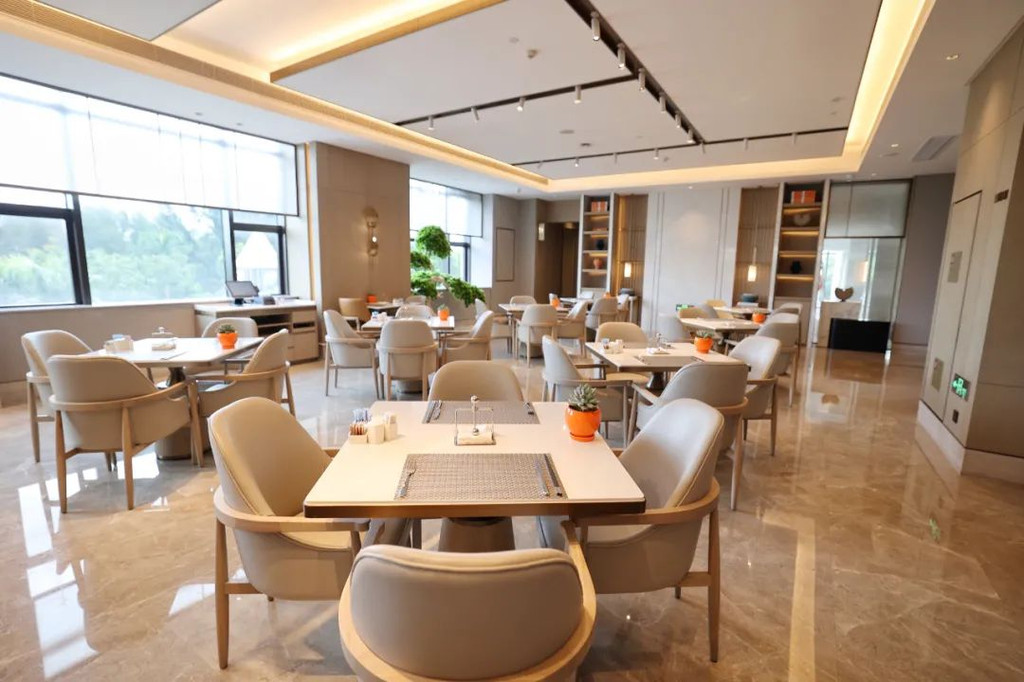 大堂酒廊设有70个座位,时尚简约的装饰和宽敞舒适的空间,是宾客们非正式商务会谈、休闲放松、品味咖啡或茶饮的理想选择。我们经常会看电视都发现很多人喜欢去酒店吃下午茶,因为酒店的下午茶确实是比外面咖啡厅或者网红小店坐得舒服,而且蛋糕点心都很出彩。