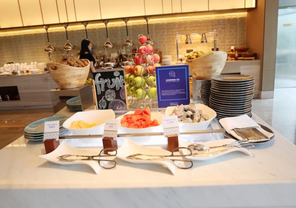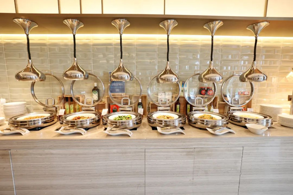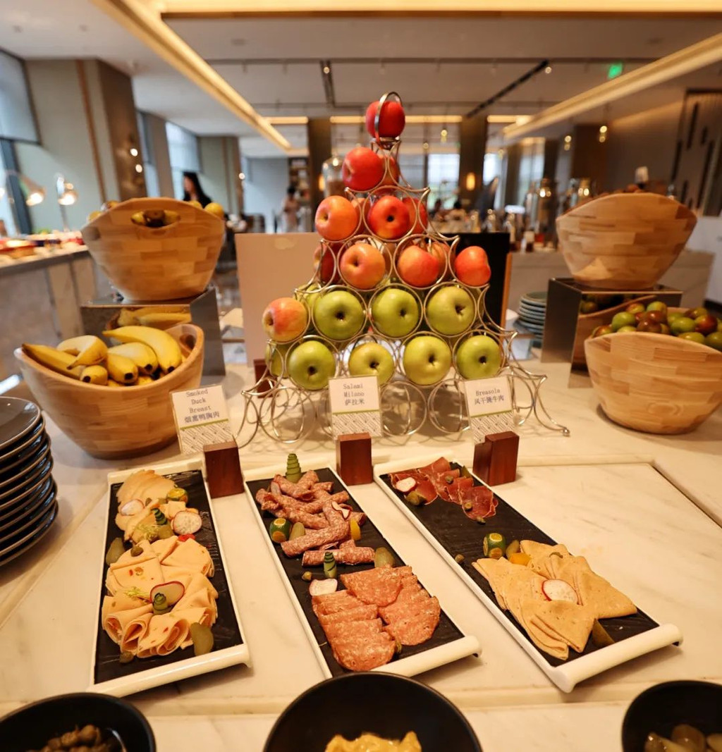 酒店不定期推出不同主题的下午茶,出品的点心是真的很棒,看样子好看,吃起来每一款里面都会有一个小惊喜,我先不剧透,大家有机会可以来试试的哦。【“開”全日餐厅】时尚高雅的全日餐厅,提供中西式自助早餐以及从早上6:30至晚上21:30全天候零点服务,餐厅可容纳166人同时用餐,在酒店的两天,我们在这家全日餐厅里经历了美好的一日三餐:【早餐】