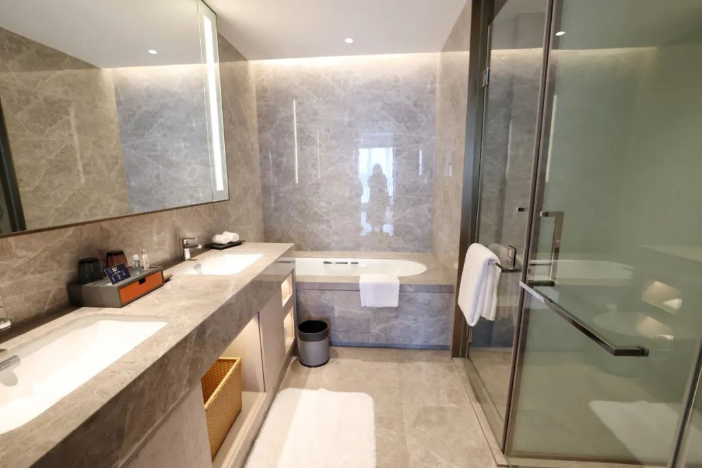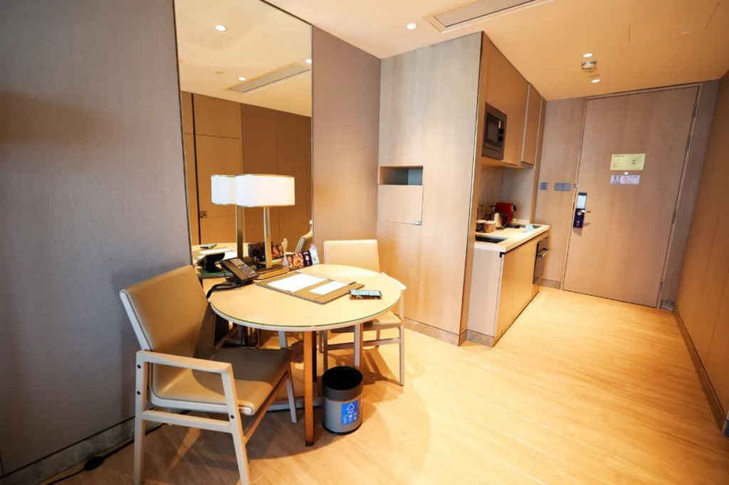 深圳南山希尔顿逸林酒店及公寓的套房设有独立厨房及独立客厅,并同时配备洗衣机、微波炉、冰箱及步入式衣橱等家居设备。独立浴缸和雨淋花洒,配备希尔顿逸林品牌洗护产品套装,出差一天在这里泡个澡,很舒服哦。 【八种房型任君选择】作为大中华地区首家希尔顿逸林酒店及公寓,客房总数为305间,包含逸林房、豪华房、逸林套房及豪华二居室公寓等多种房型。