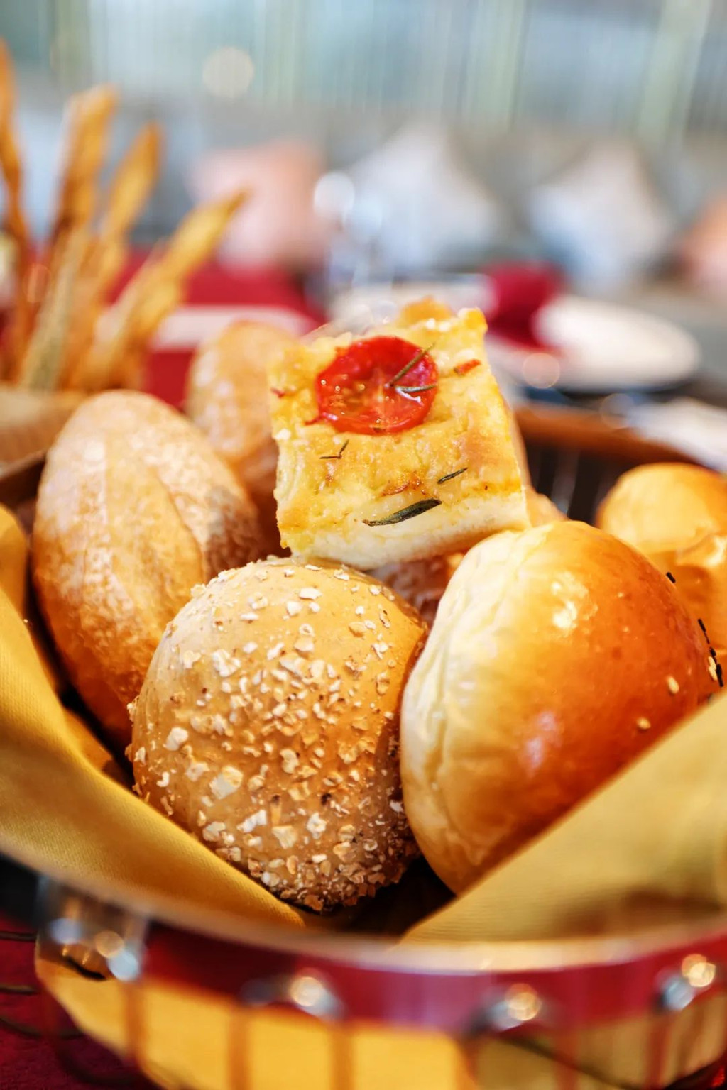 美味营养早餐哦,美好的一天从早餐开启,早餐的选择很丰富,从点心到包点,沙拉都很新鲜。酒店里吃早餐,真的是享受人生的最佳体验哦!【午餐】只要你有需要,餐厅摇身一变就变成了一个超有仪式感的西餐厅。【自制面包】【蘑菇芝士球】