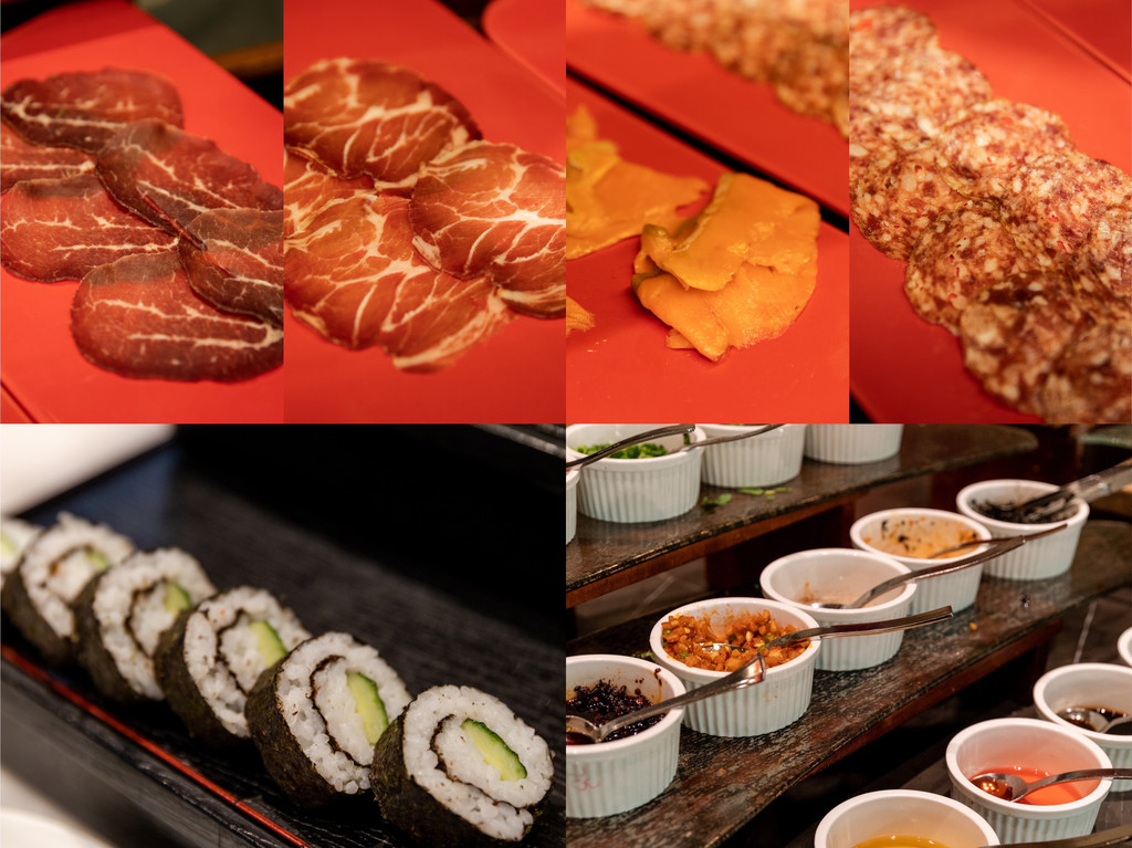 早餐大致分为日料区,面包区,熟食区,汤粉粥区,果汁饮料区,水果区。
