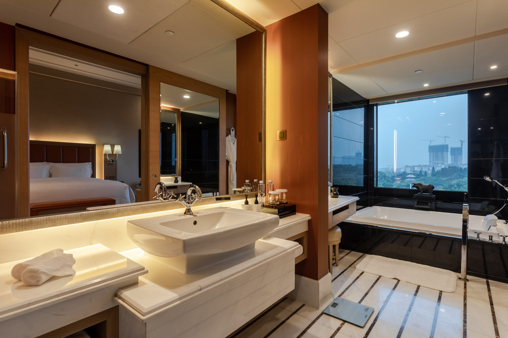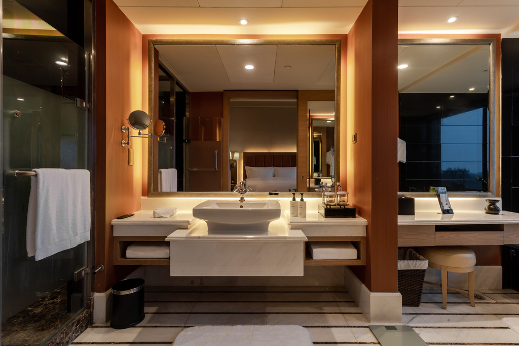 宽敞的洗漱间真的非常棒,还有独立化妆台,对情侣出行的我们,感受非常好,早上洗漱刚好可以互不打扰,我安心洗漱,女友可以在一旁静静地化妆。