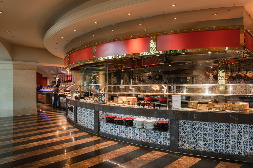 自助餐厅的设计灵感来源于西班牙的传统市集,所以整体空间特别的大,复原市集热闹的感觉,最多可同时容纳三百多人享用早餐。拱门式的过道顶让空间有了进深感,特色的瓷砖贴片是一大特色,十分具有艺术美感。