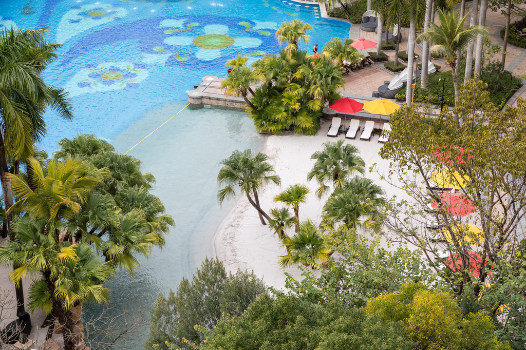 而室外泳池和沙滩游乐区,真的是太适合夏天度假了,亲子出游是最好的了,都能享受玩沙子晒太阳玩水的乐趣,沙子都是全部从三亚运过来的,所以非常的洁白舒适,真有一种在海岛游玩的体验感。