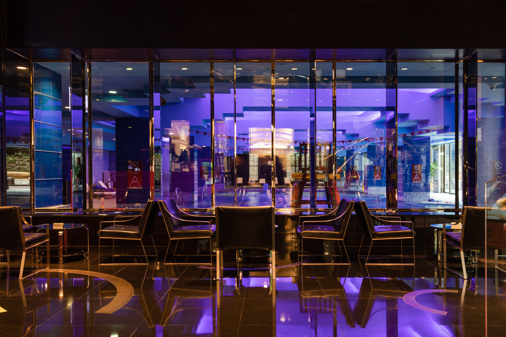 健身房的正对面就是室内游泳馆,迷人的紫色灯光,充满了未来感和梦幻感,恒温泳池,可以一年四季都能享受游泳的乐趣。
