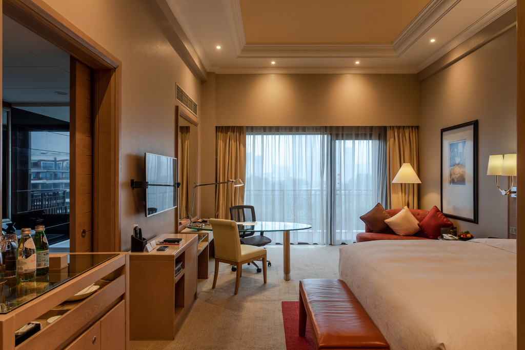 房间分区明朗,衣帽间,迷你吧,休息区,办公桌,洗簌间都有各自的区域且很宽敞。我个人是非常喜欢靠近窗户边的休息区的,可以很放松的躺坐着,品尝酒店赠送的欢迎水果盘,还非常用心的写了一份欢迎卡片,被暖心到。