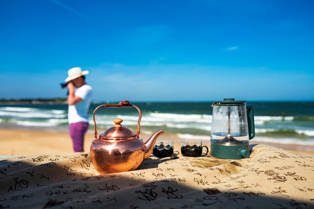 拍风车岛最佳是日出时分,霞光刚好能照在大风车上。但我们自驾到施公寮半岛(风车岛)的时候,刚好是夕阳西下,于是享受当下。车友们在海滩散步、捡贝壳,我们则坐在沙滩边喝茶,看着夕阳照在海滩和游人身上,暖的色调让人感受到丝丝温馨。一个孩子与父亲一起悠闲地荡着秋千,看到我们在拍照,小朋友有点紧张,几句笑话,瞬间展露开心的笑容。