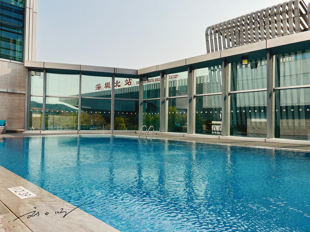 在泳池旁边就能看见“深圳北站”的标志,这样是不是能更加真切地感受到“深圳深铁铂尔曼酒店”距离高铁站有多近了?