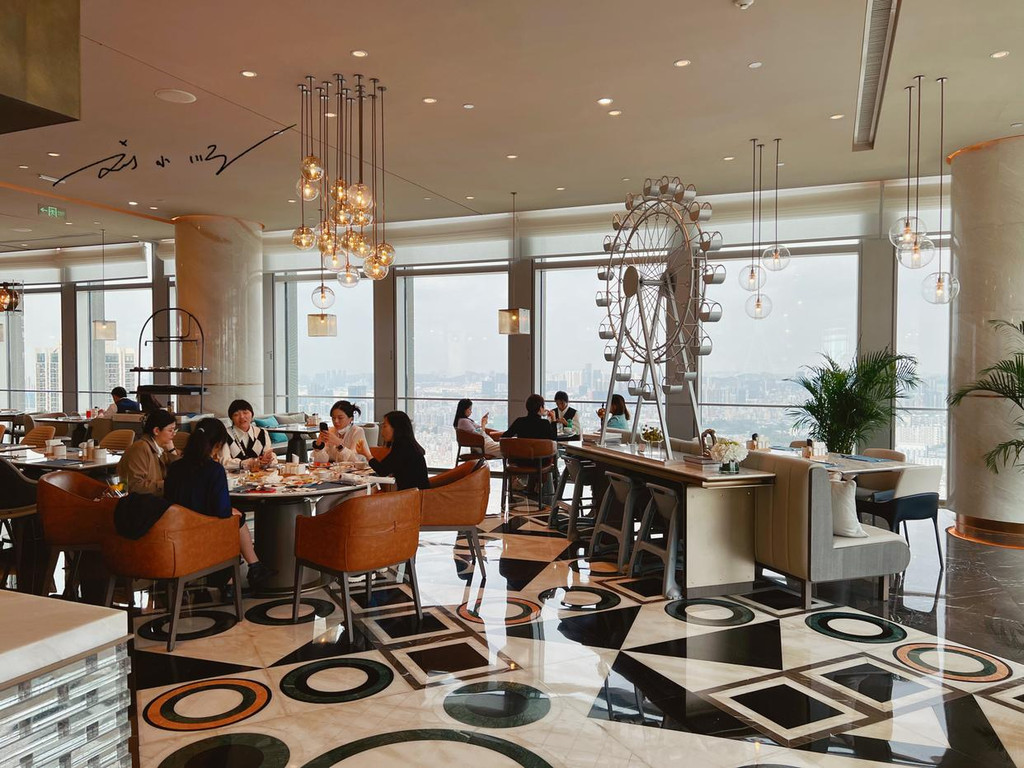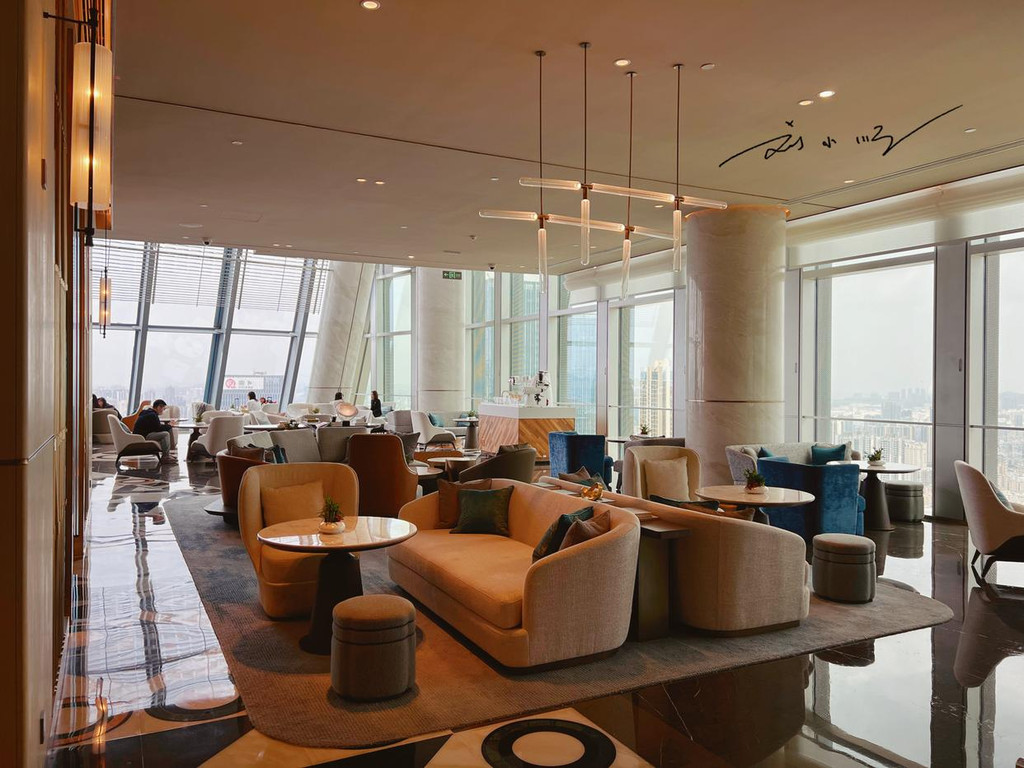 在58楼的“行政酒廊”能看见更远的视野、更好的城市景观,无论是自己在这里放松休息,还是跟三五好友小聚一番,确实都再适合不过了。