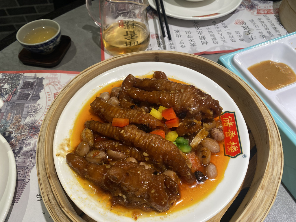 最后是蒸凤爪。蒸凤爪是一道传统的粤式点心,以其软糯的口感和独特的味道而受到人们的喜爱。储香楼的蒸凤爪做得非常地道,凤爪经过蒸制后变得软糯可口,轻轻一撕就能脱骨。凤爪的调味也十分到位,咸甜适中,口感十分好。每一口都能感受到凤爪的鲜美和调料的浓郁味道完美融合。