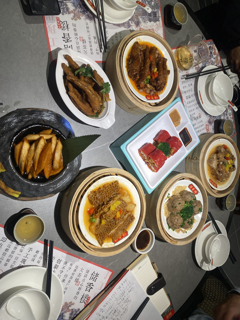 在服务员的热情招待下,我点了几样茶楼的招牌菜品:虾饺、乳鸽和蒸凤爪。不一会儿,这些令人垂涎欲滴的菜品就一一摆在了我的面前。