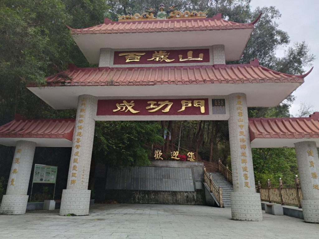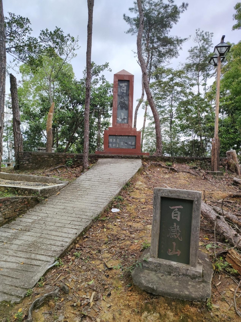 山顶上的体育机械一应俱全,如有余力,可来此锻炼健身。同时山顶设有一处百岁山碑,由旅英华裔赖英豪、熊利敏伉俪在2003年春捐建的,在此感谢他们的奉献。其实国内特别多华人华侨捐赠的建筑。大家虽然已经远离故土,但依然心念故乡,还是蛮好的一件事情。