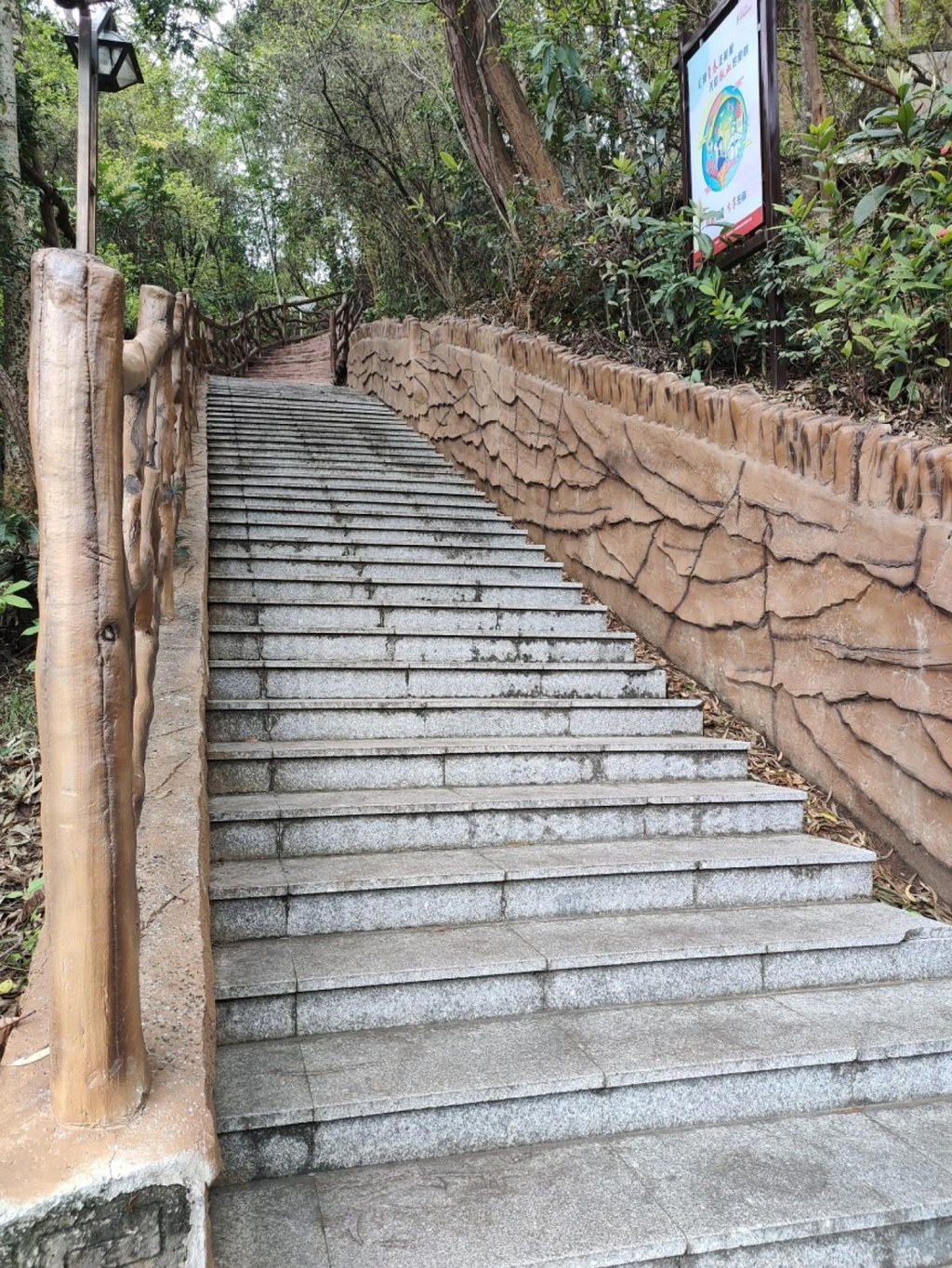 郁郁葱葱的步道,古色古香的护栏,令人心旷神怡。累了困了没关系,中间有多处休息亭,像棠彪亭、慧清亭、平安亭、百岁亭等。看到桂花园便知要成了,终于成功登顶,征服欲瞬间涌上心头,在那一下就都释放了出来,畅快畅快。