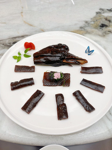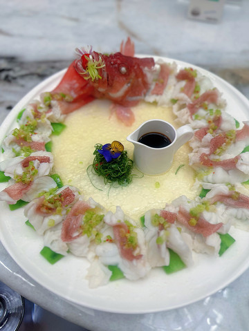 盘龙蒸东星斑:摆盘精致,是一道让人眼前一亮的海鲜美食,选用优质的东星斑,经过精细的切割和处理,将鱼肉均匀摆放在盘中,再加入特制的酱料和调料鱼肉肉质鲜美,口感嫩滑~原创原味潮汕菜真的太有特色了。
