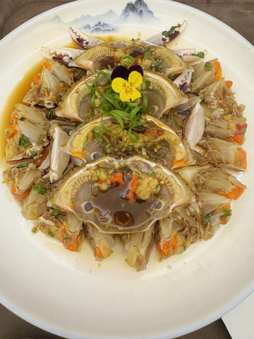 生腌膏蟹:这可是潮州菜的经典啊!峪园酒家做的生腌膏蟹真的绝了。螃蟹膏多肉肥,腌料调得刚刚好,蟹膏入口即化,带着浓郁的酒香和鲜美的味道。