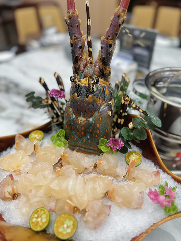 澳龙刺身: 一上桌的澳龙刺身,摆盘精致色泽鲜艳,切成一片片薄片,晶莹剔透的 蘸点柠檬汁和酱汁,吃起来更加的鲜美 肉质也很鲜嫩,一点也不会觉得腻。