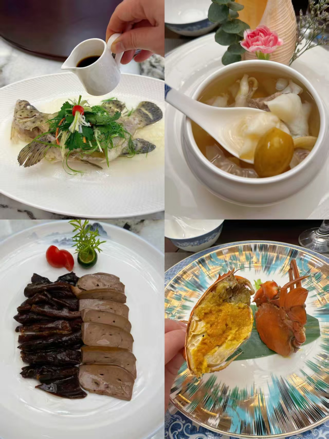 金瓜燕:金瓜的清甜包裹着燕窝的嫩滑,点缀的枸杞增添了几分色彩,吃起来甜而不腻,是餐后甜品的精致选择,女孩子都爱点。