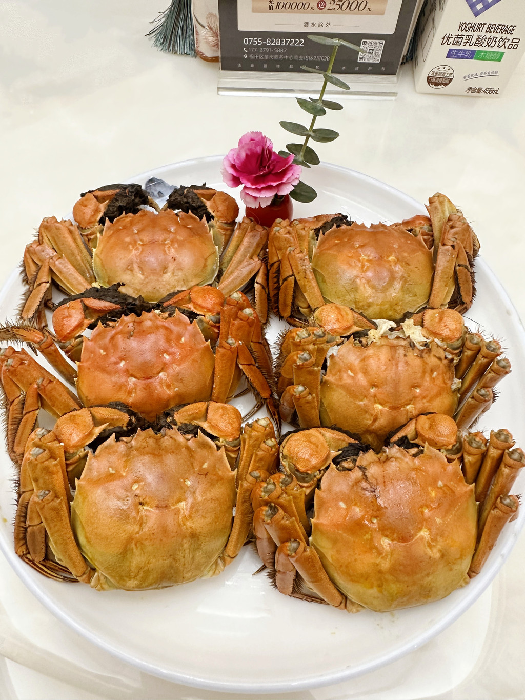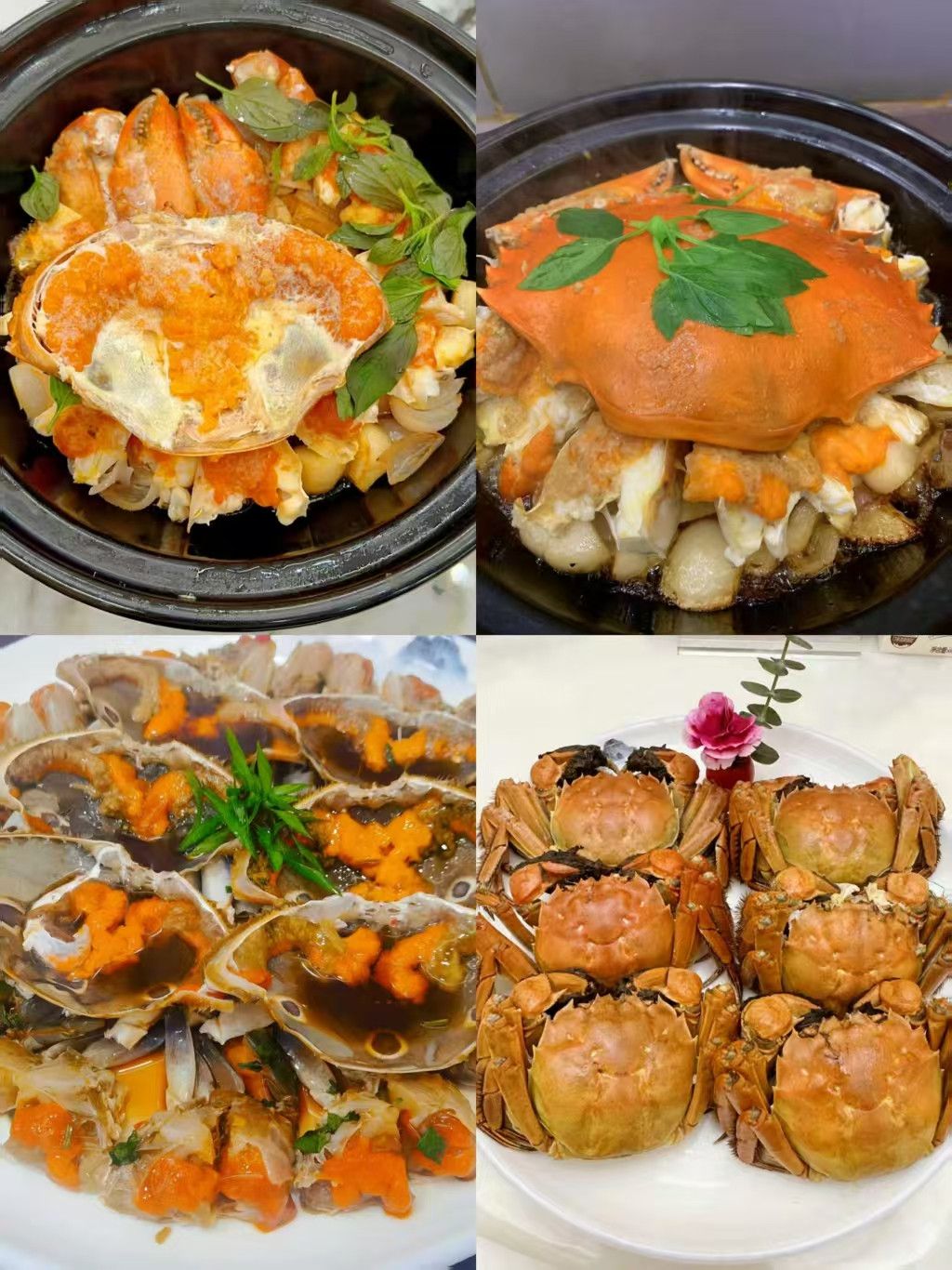 一、清蒸大闸蟹:原汁原味的“鲜”气担当 要说吃蟹的经典打开方式,清蒸大闸蟹绝对是“C位”!大厨精选肥美的大闸蟹,清水静养后上锅清蒸,保留最本真的滋味。揭开蟹壳的瞬间,橙黄的蟹膏如凝脂般诱人,蟹肉雪白紧实,蘸上一点秘制姜醋汁,鲜、甜、香在舌尖炸开,那股子“鲜”气,简直是秋冬时节的治愈系美味!