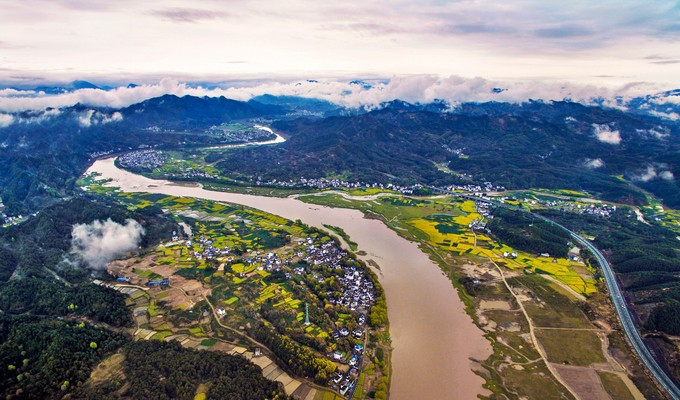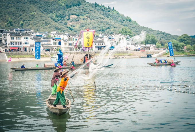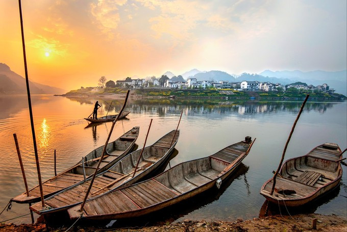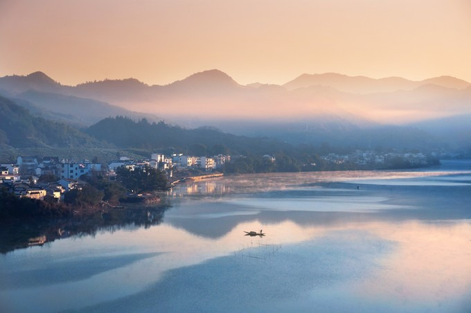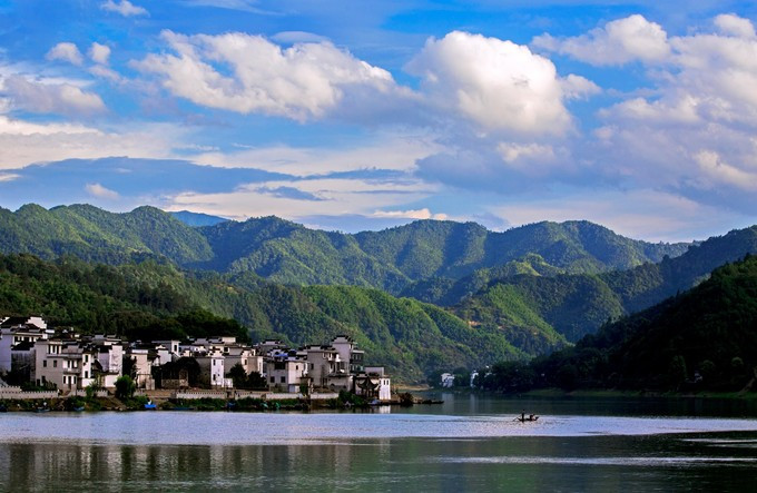 新安江山水画廊新安江是徽商的母亲河,她以中国独特的徽文化与自然风光、古村落的美妙结合著称于世。现两岸生态环境极佳,呈现高山林、中山茶、低山果、水中鱼立体生态格局,与掩映其间的古村落、古民居交相辉映,构成一幅秀丽的世外桃源图。诗仙李白:“清溪清我心,水色异诸水。借问新安江,见底何如此。人行明镜中,鸟度屏风里”便是出自此处。