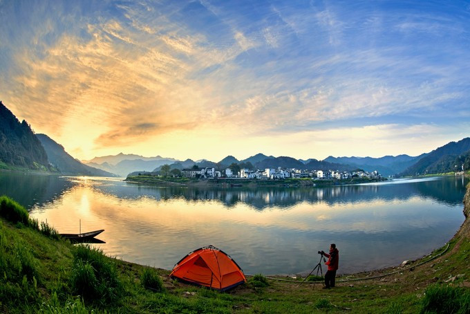 拍照的朋友可以沿着新安江山水画廊走南源口—坑口—樟潭—绵潭这条线,南源口-绵潭段是风景优美、路况良好的沿江公路。重点风景区域一般指“三潭”,三潭是指以三个江水深潭取名的村庄,分别是瀹潭、漳潭和绵潭。三潭这里盛产枇杷,如果是五月枇杷黄的时候来,只见两岸的枇杷林“树繁碧玉叶,柯叠黄金丸”,翠绿丛中泛出团团簇簇的金黄与橙红。