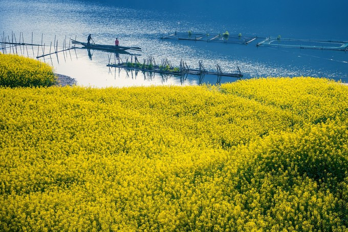 9:00 开始徒步,首先就要摆渡一次!开始我们的漫山遍野油菜花的行程!