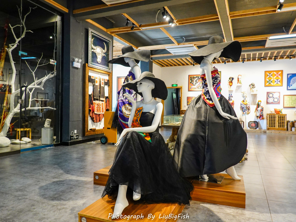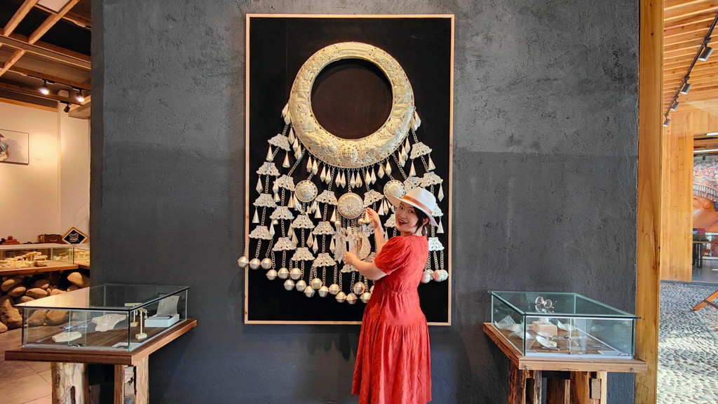 在舞水云台,传承的苗绣与当代的时尚相融合,首饰、衣着、室内陈设等方方面面的苗族审美作品应运而生,让人应接不暇,驻足观赏。
