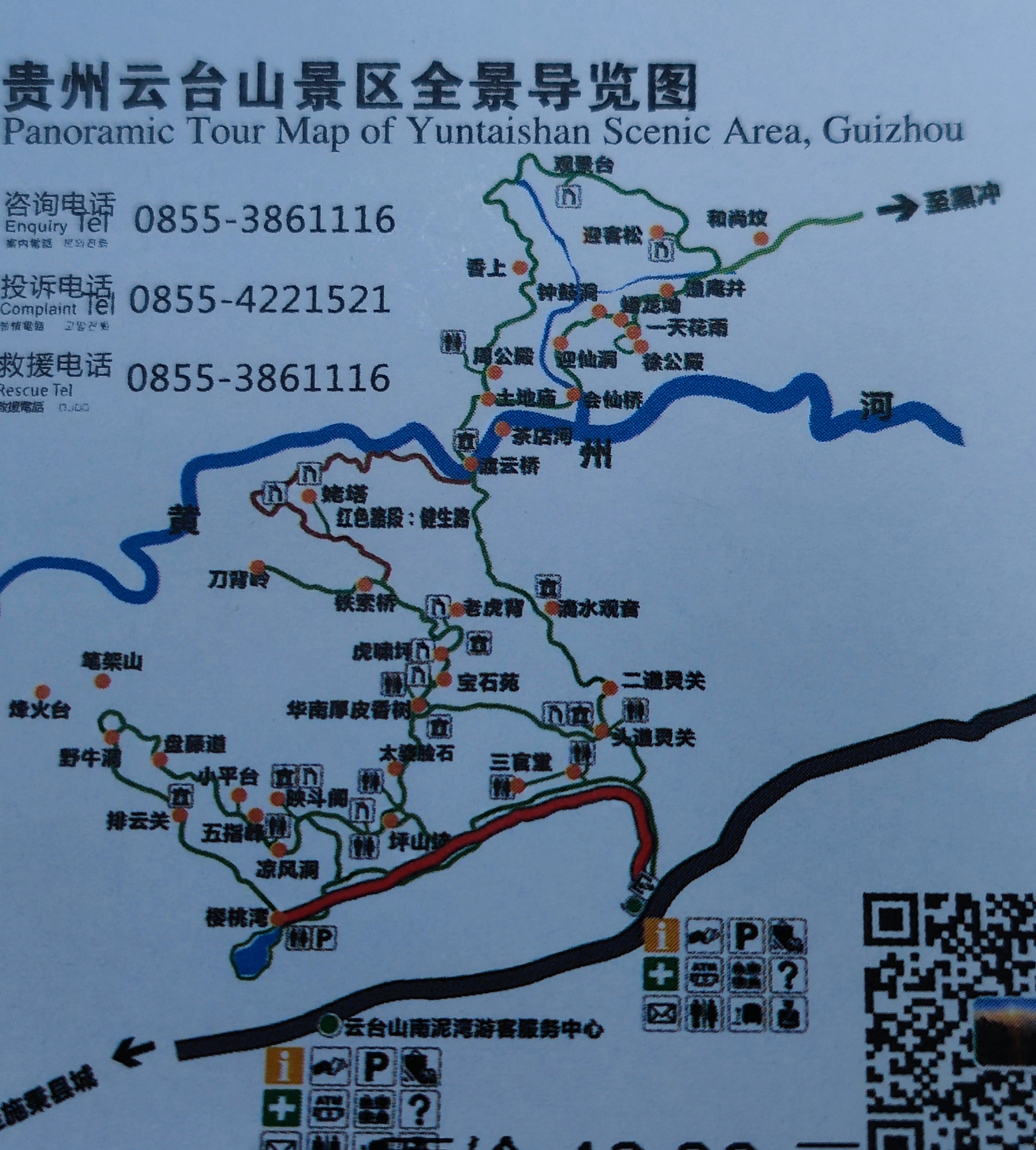 高级线路:景区大门~头道灵关~二道灵关~滴水观音~渡云桥~周公殿~香上~观景台~迎客松~一天花雨~徐公殿(山顶)~一天花雨~盘龙坳~迎仙洞~会仙桥~渡云桥~滴水观音~二道灵关~头道灵关~景区大门