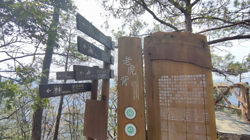 初级线路一:景区大门~坪山垴~太婆脸石~宝石苑~老虎背~~铁索桥~刀背岭~原路返回