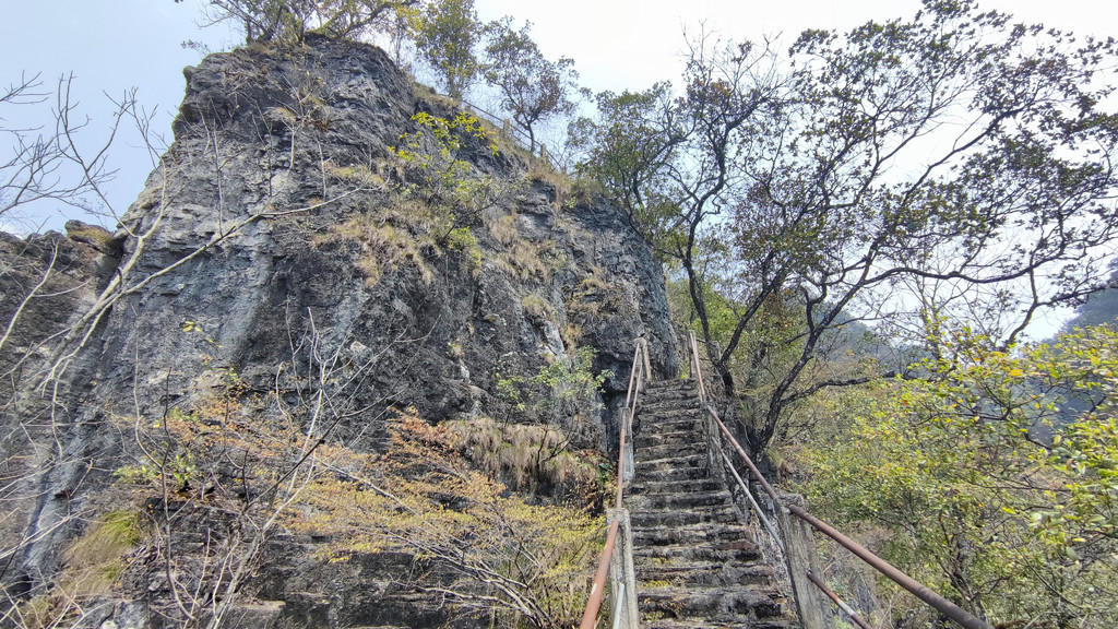中级线路:景区大门~坪山垴~太婆脸石~宝石苑~老虎背~~铁索桥~刀背岭~红色路段(健生路,用提示牌不让过,有一段很难走)~渡云桥~滴水观音~二道灵关~头道灵关~景区门口。
