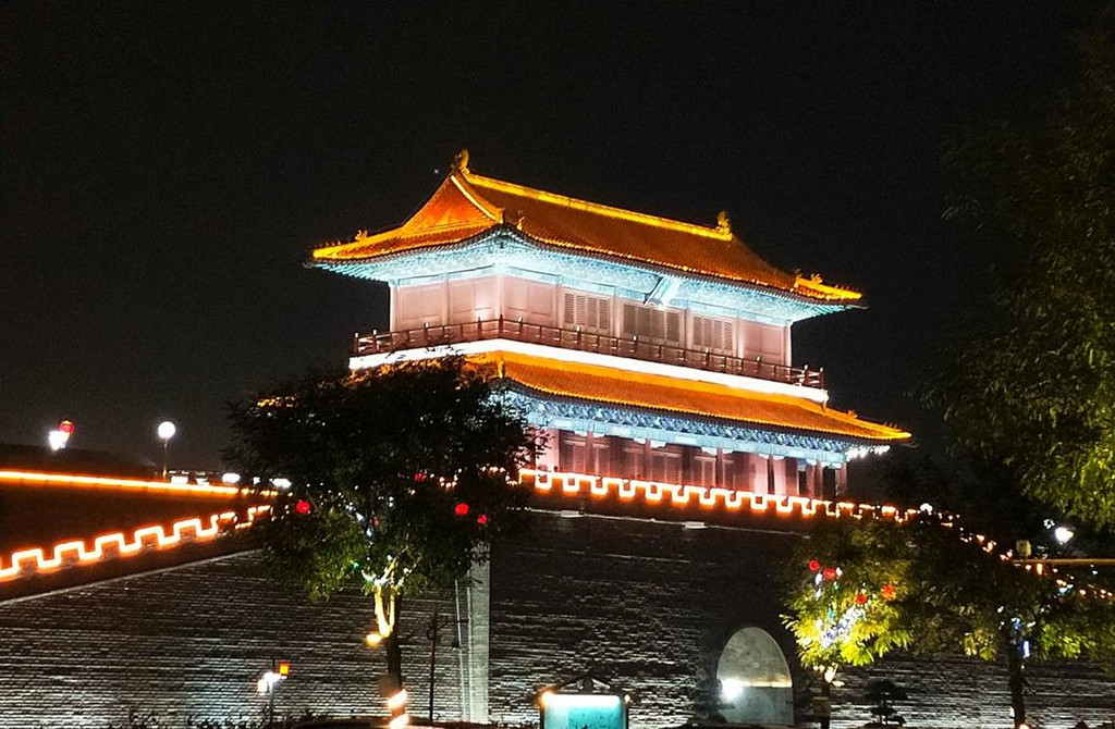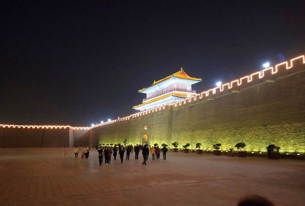 到了正定古城,晚上一定要去南城墙逛一逛,高高的城墙,黄色的射灯,把这个城墙拍摄的神秘又高阶。几个人在这里不断地拍照片。