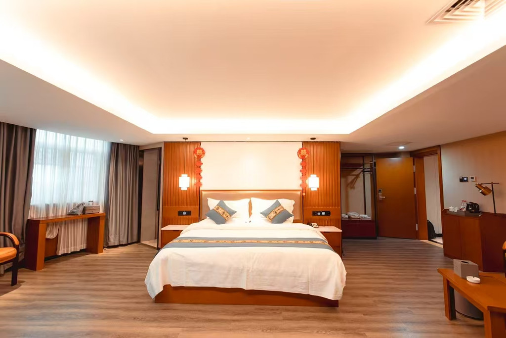 石林顶德顺大酒店 位于昆明石林县城石林大道,处于石林新旧区交界处,距离石林景区约 9.8 公里,高速入口约 3.8 公里,门口有多路公交车往返石林景区。交通十分便利,方便游客前往石林景区及周边地区。酒店采用简中设计风格,设施齐全,配备 TOTO 卫浴、3 秒热水、舒适床垫、高支高密布草等。周边餐饮、购物等生活配套丰富,临近石林商业步行街、阿诗玛小镇等,距离石林历史博物馆、双龙公园等景点也较近。