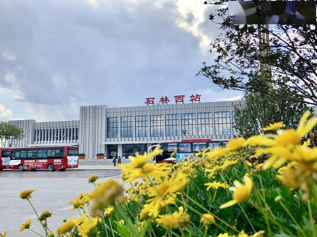 ②机场乘坐接驳车到达昆明南站/昆明站,票价25元/人,再转乘站内动车到达石林西站。